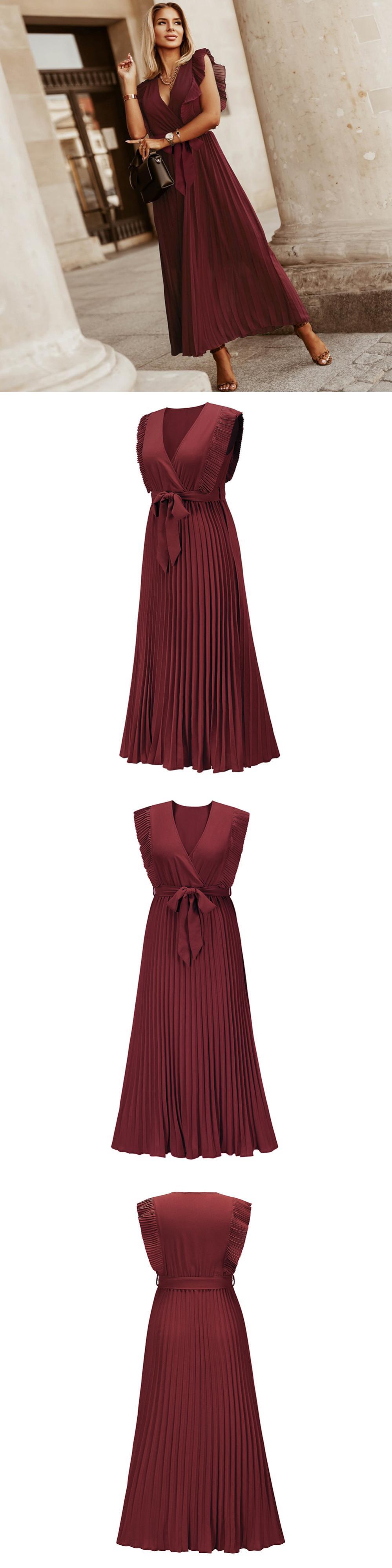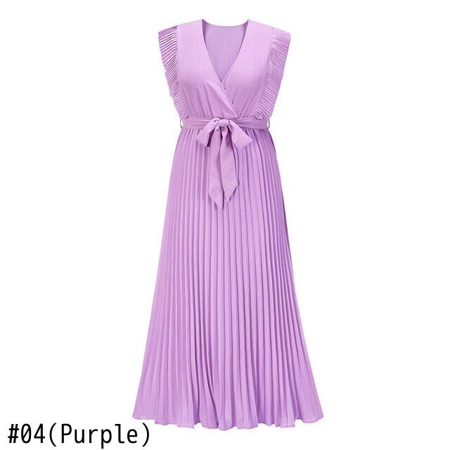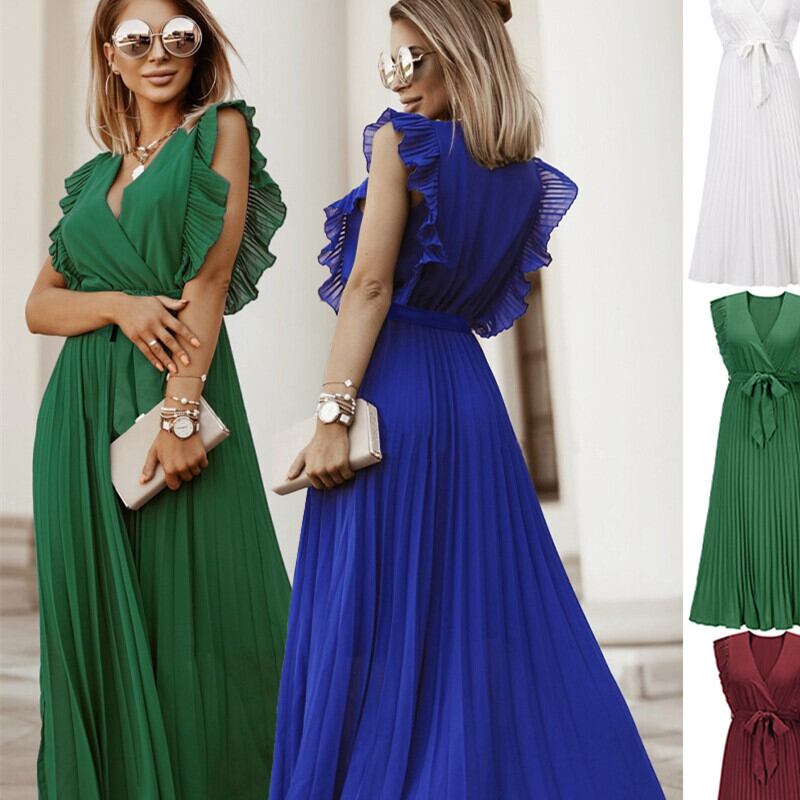 夏バタフライスリーブロングプリーツドレス女性ホワイトシフォンマキシパーティーローブ 2022 V ネックフリルピンクホリデードレス サマー 夏物 Vネック bel95945133926 | aliel