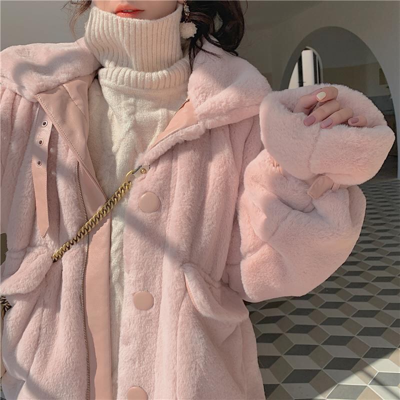 2021 秋冬フェイクウサギの毛皮のコート緩い暖かいオーバーコート人工毛皮のコート veste fourrure ファムフリースジャケット オータム 秋物 ウィンター 冬物 ファー フェミニン bel77935369320 | aliel