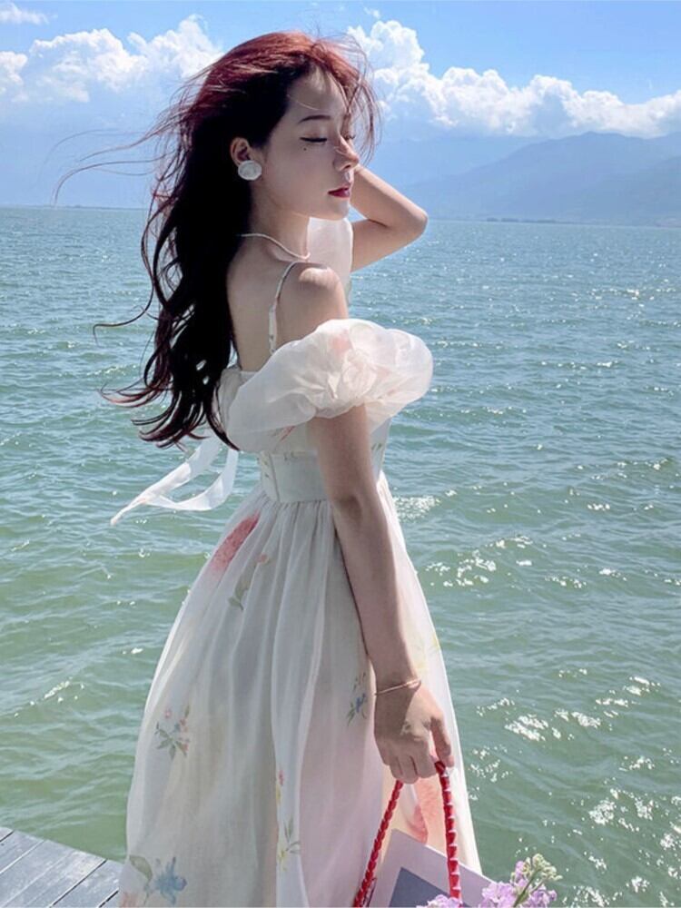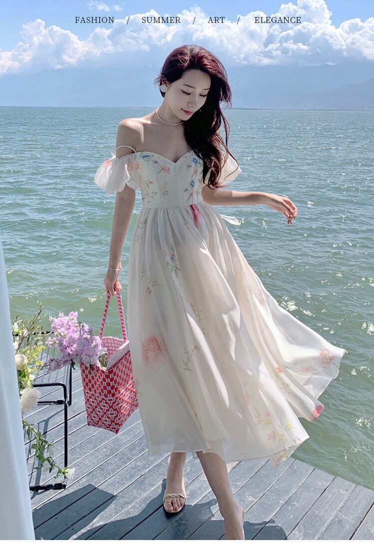 フローラル プリント ミディ ドレス パーティー サマー ドレス 流れるようなウエディング エルビーゼ シックなホリデー ビーチ 自由奔放に生きる Vestidos 夏物 花柄 bel67631052118 | aliel