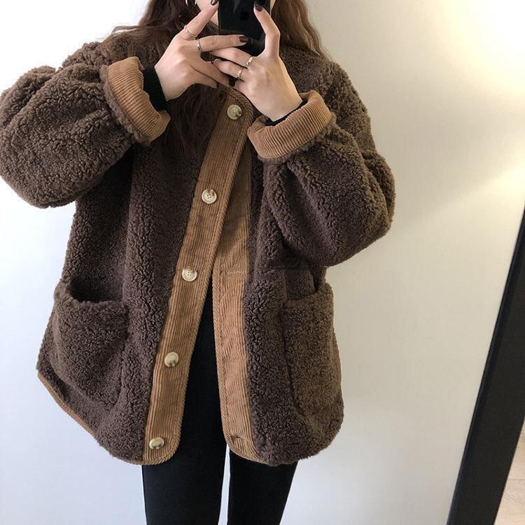 2021 秋冬肥厚ベルベット両面毛皮のコートラムウールのオーバーコートジャケット冬の子羊の毛皮のジャケットの女性ショート オータム 秋物 ウィンター 冬物 bel71042042366 | aliel