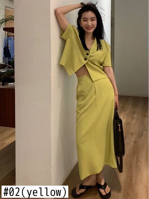女性の夏のブレザースーツ半袖ブレザー + t ウエストロングスカート 2 ピースセットオフィスレディ ショート ハーフスリーブ サマー 夏物 会社 学校 通勤や通学にも bel72024464810 | aliel