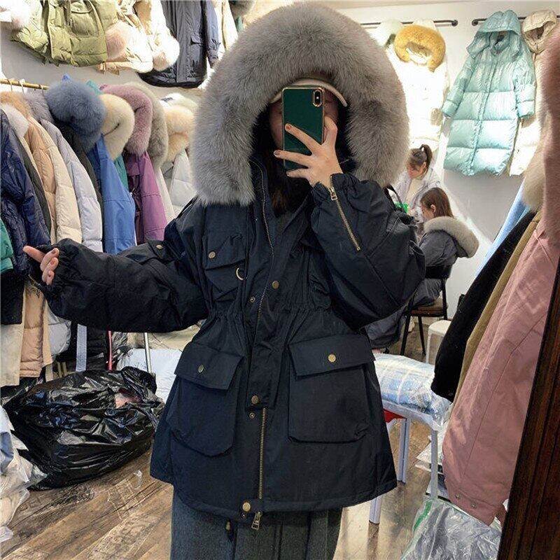 大自然キツネの毛皮の冬のジャケットの女性 90% ホワイトダックダウンコート厚く暖かいパーカーサッシタイアップ雪のコート ウィンター 冬物 ナチュラル 天然 bel53463459418 | aliel