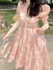 フローラル パーティー ミニドレス女性夏プリント ピンク フランス ドレス パフ スリーブ スウィート フェアリー ドレス 大人ガーリー キュート カジュアル サマー 夏物 花柄 bel93566814553 | aliel