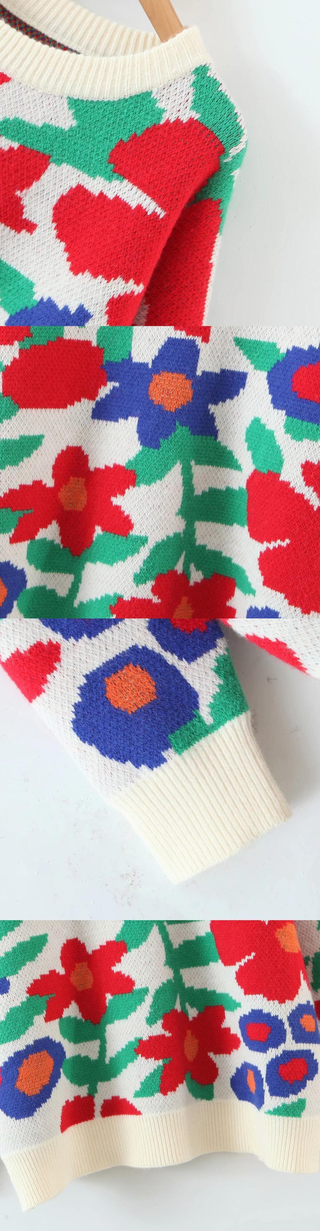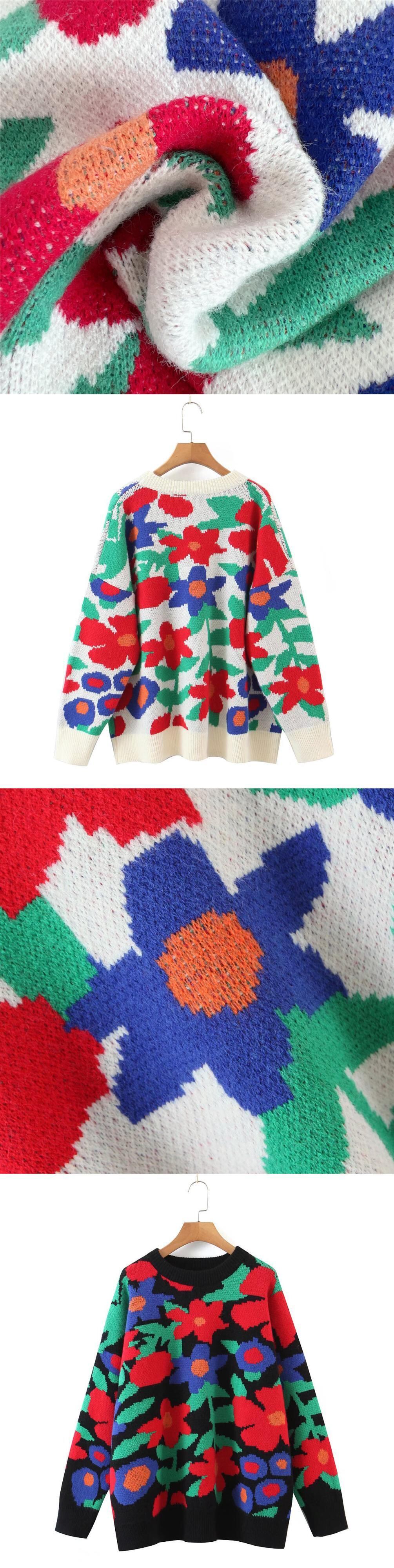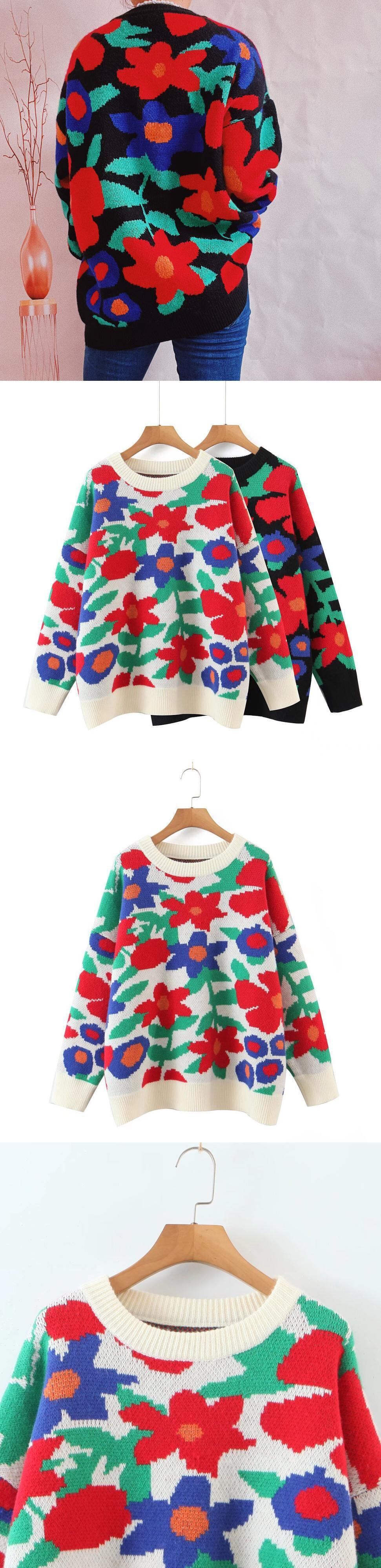 秋冬新作 大花刺繍 ラウンドネック ゆったり 長袖 ニットセーター プルオーバー レディース ロング オータム 秋物 ウィンター 冬物 Oネック フラワーデザイン bel1166470225 | aliel