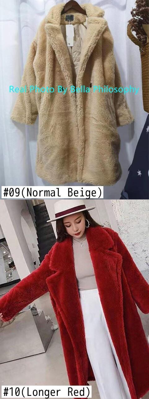Bella Philosophy 女性の冬のフェイクファー暖かいロングコート長袖厚いテディベアコート緩いオーバーサイズ Outwears ウィンター 冬物 bel46997463932 | aliel