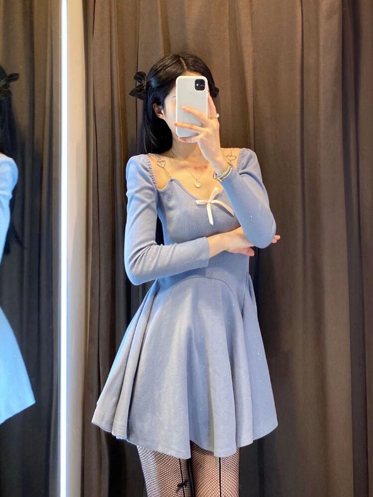 夏の甘いドレス女性 V ネック弓スリムフィットシックな優しいソフトドレスホリデーかわいいパーティードレス 2021 リボン 大人ガーリー スウィート キュート カジュアル サマー 夏物 Vネック bel63115119820 | aliel