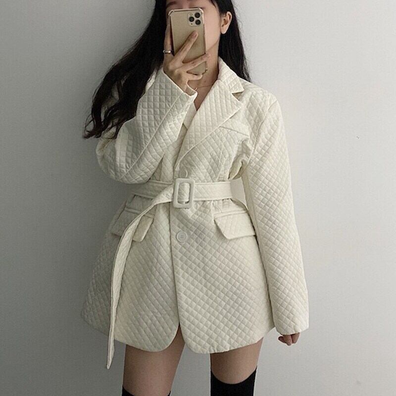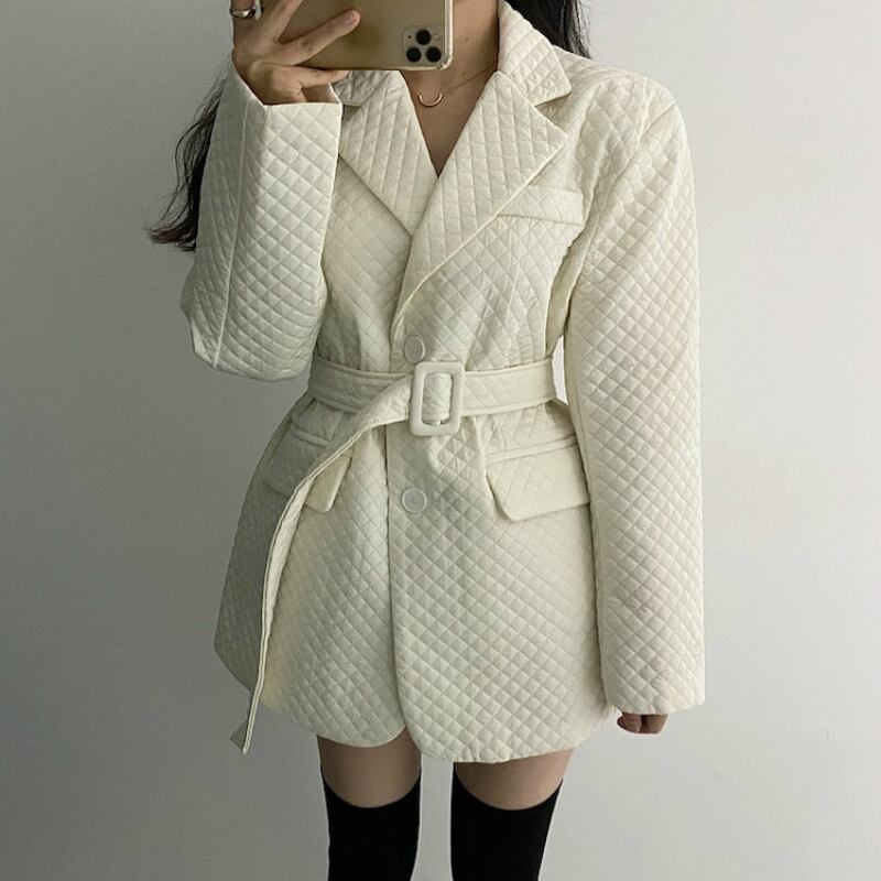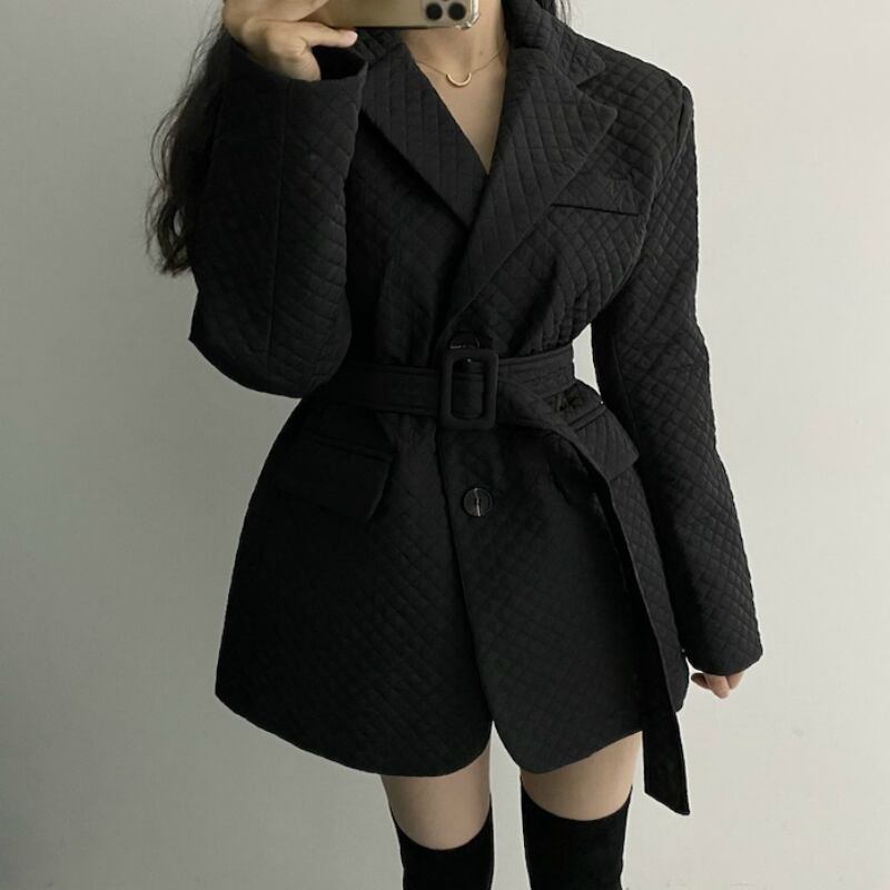 女性の冬暖かいブレザーパーカーコートジャケットスリムウエストオーバーコートシングルブレストチェック柄生き抜くウエストベルト付き ウィンター 冬物 ハーネス bel30829914173 | aliel