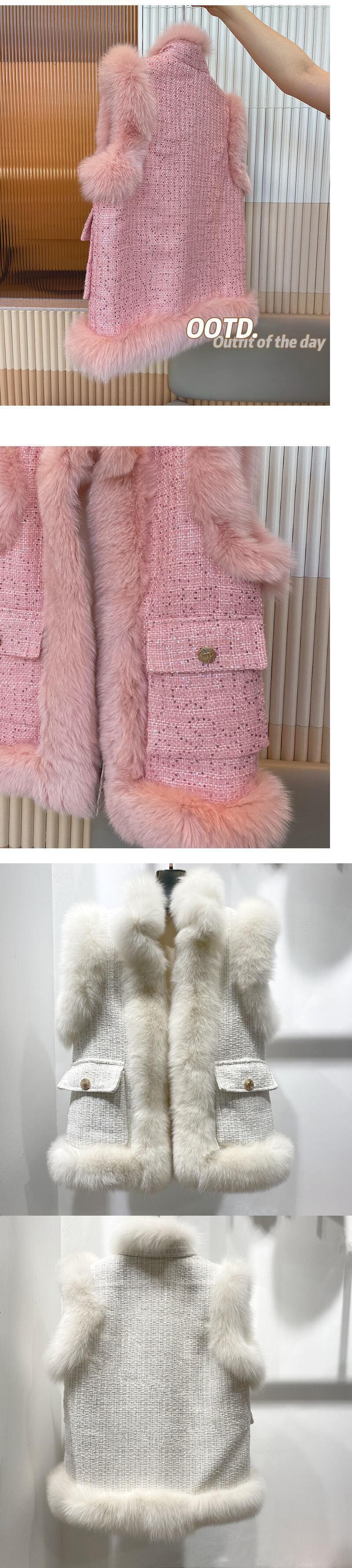 冬のピンクの甘いフェイクファーコートビッグポケット厚く暖かいウールのパッチワークベスト女性 Outerwears 大人ガーリー スウィート キュート カジュアル ウィンター 冬物 bel90773736100
