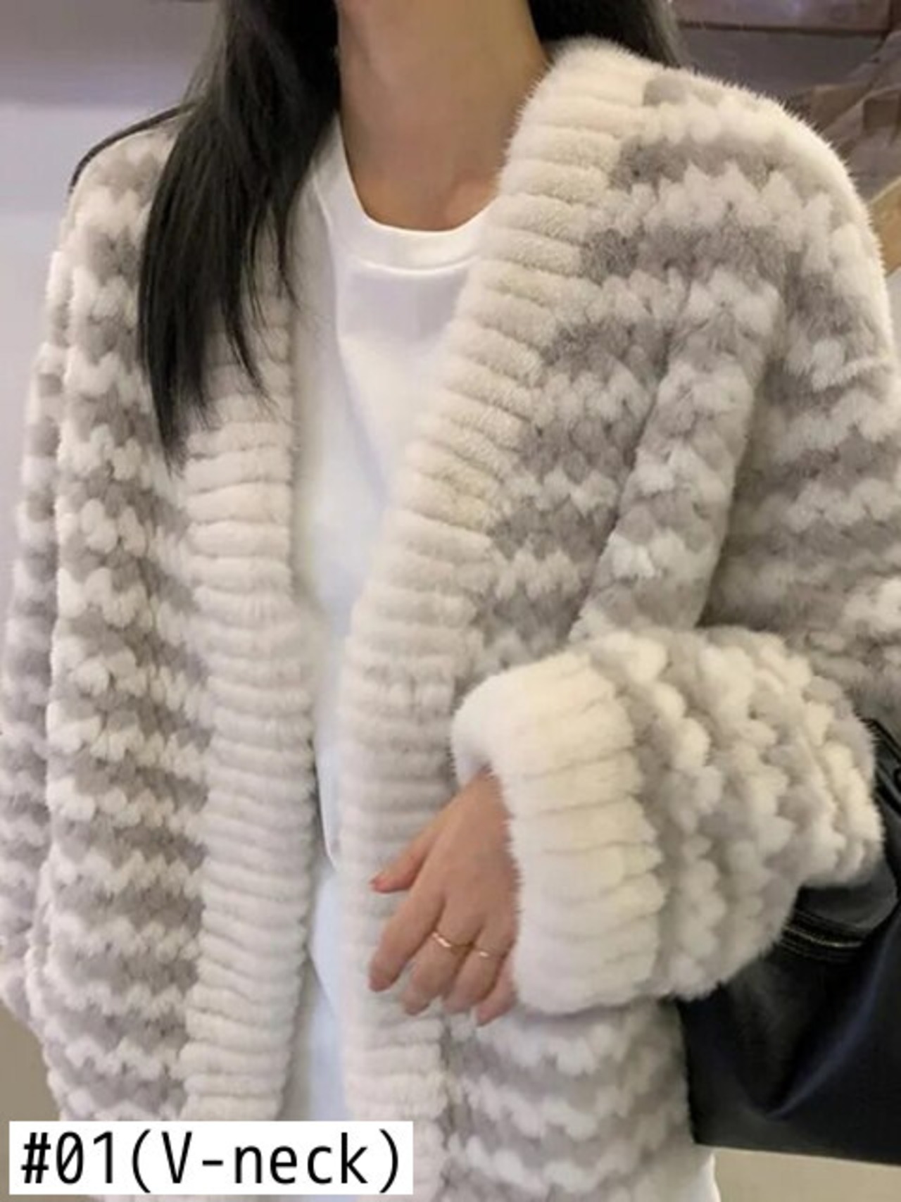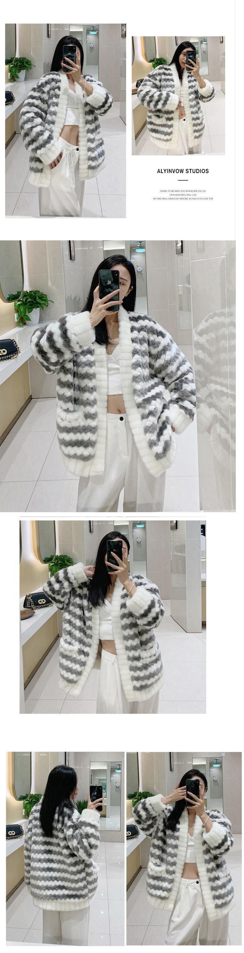 秋冬の女性のジャケットフェイクミンクファーコートミッドレングス O ネック V ネックニットトレンディコート オータム 秋物 ウィンター 冬物 Oネック Vネック bel15218968075 | aliel
