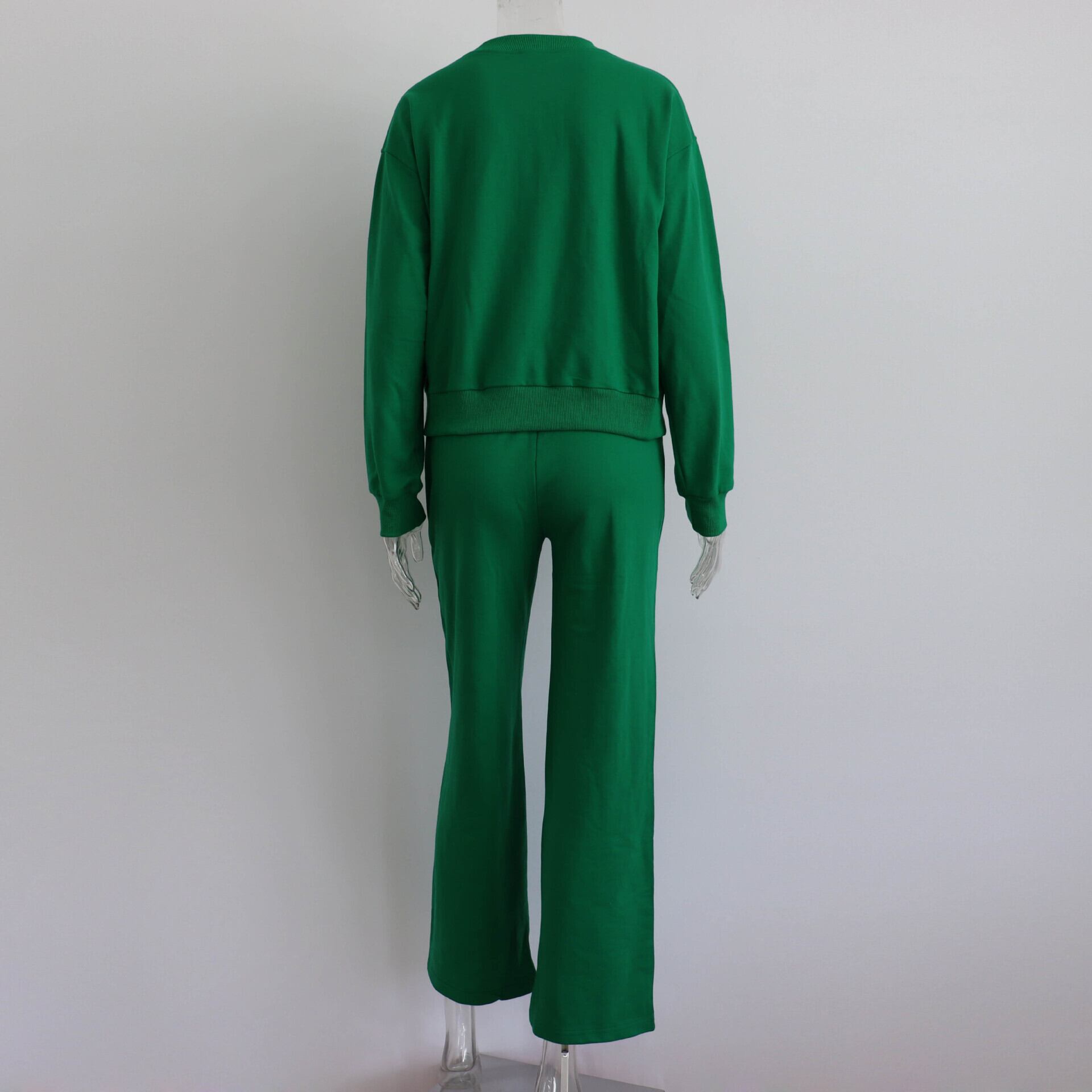 無地長袖ラウンドネックセータースーツ女性 2021 秋と冬ルーズトップワイドレッグパンツ ロング オータム 秋物 ウィンター 冬物 Oネック ソリッドカラー bel79182931976