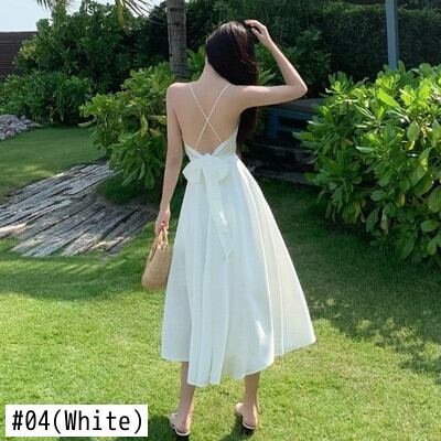 夏 2022 レディース背中の開いたスリングドレスシルクサテンセクシーな白いホルタードレスシーサイドビーチホリデー Vestidos ホワイト サマー 夏物 bel13904169467 | aliel