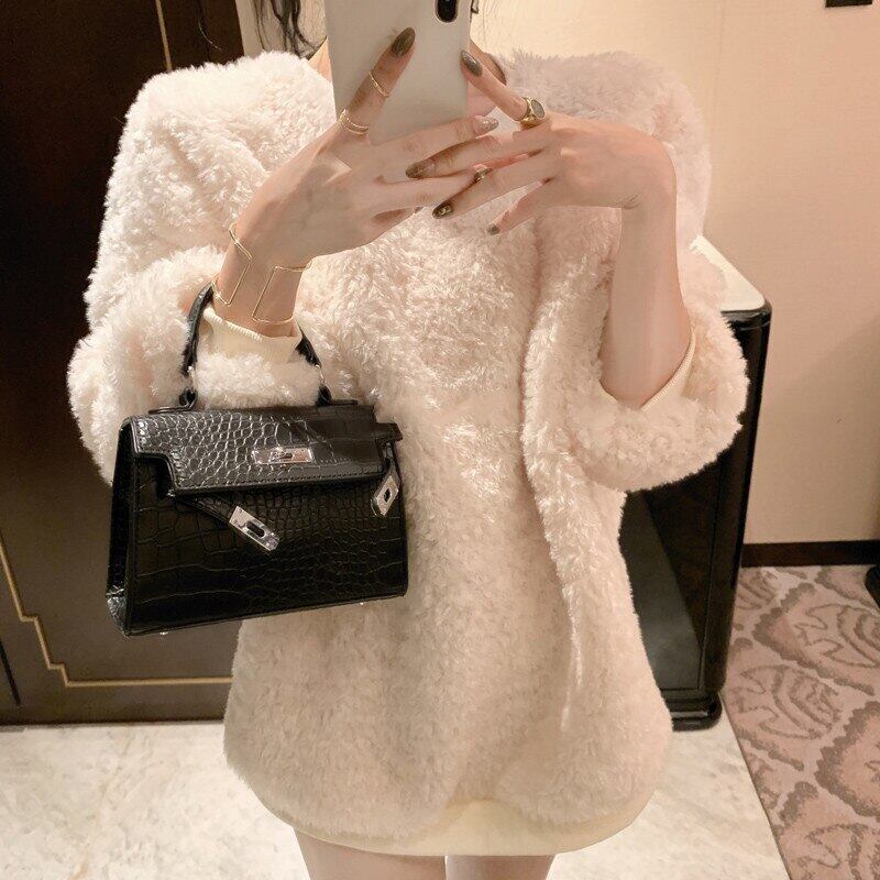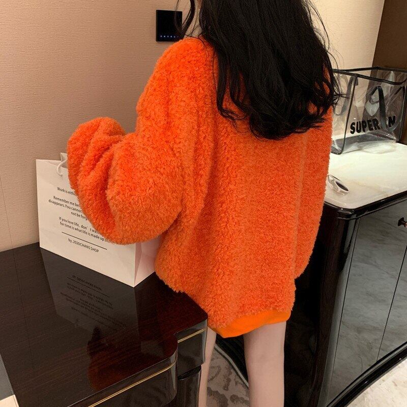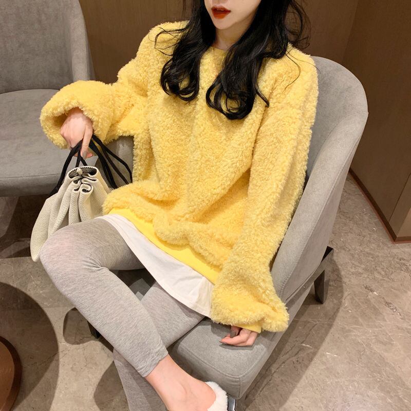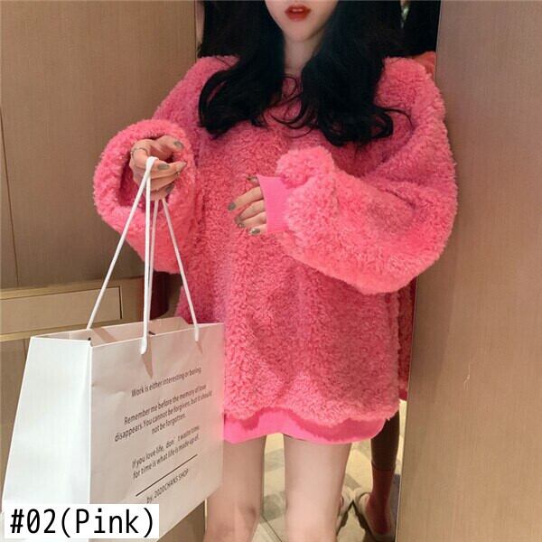 甘いキャンディーカラーの子羊のウールのスウェットシャツの女性のファッション秋冬oネック長袖プルオーバー緩い厚いふわふわルーズトップス ロング 大人ガーリー スウィート キュート カジュアル オータム 秋物 ウィンター 冬物 bel83410515556 | aliel
