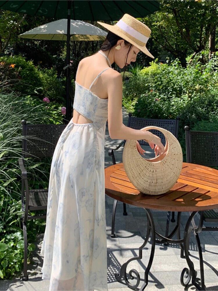 夏のパーティーシフォンドレスの女性 2022 ストラップセクシーな Wasit プリントドレスノースリーブ甘い弾性ドレス エラスティック 伸縮 大人ガーリー スウィート キュート カジュアル サマー 夏物 bel35503285960 | aliel