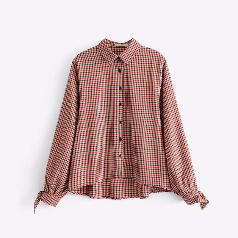 女性春長袖チェック柄ブラウスシャツレースアップルーズブラウス甘いレトロブラウストップス ロング 大人ガーリー スウィート キュート カジュアル スプリング 春物 bel61677899149 | aliel