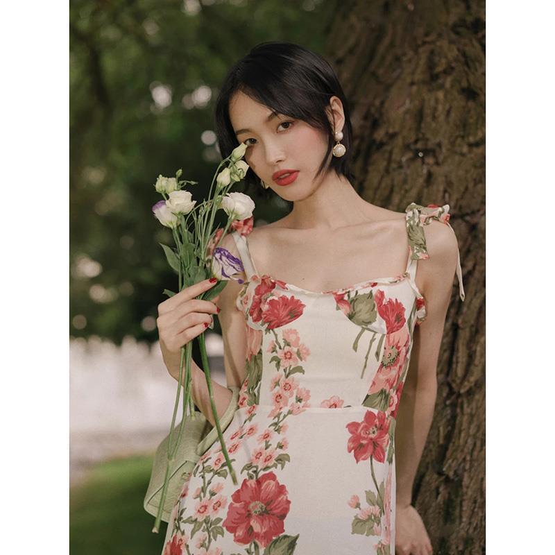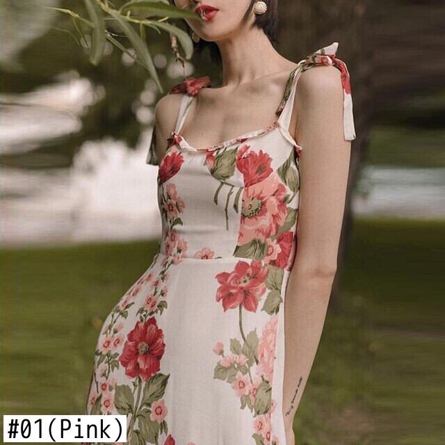 フレンチスウィート花ドレス女性スパゲッティストラップビーチキャミドレス夏オフィスレディパーティー Vestidos 大人ガーリー キュート カジュアル サマー 夏物 花柄 会社 学校 通勤や通学にも bel46673251076 | aliel