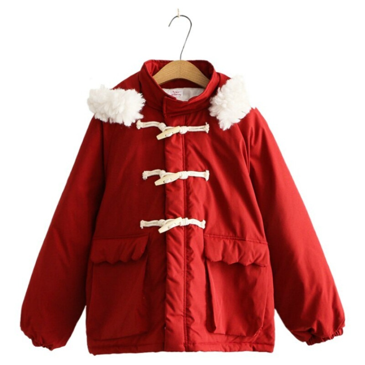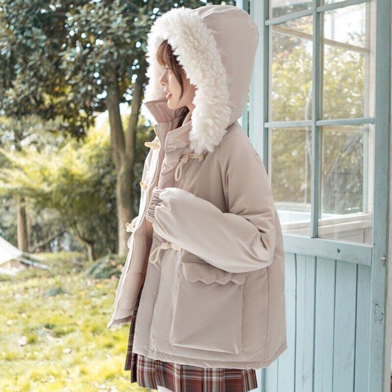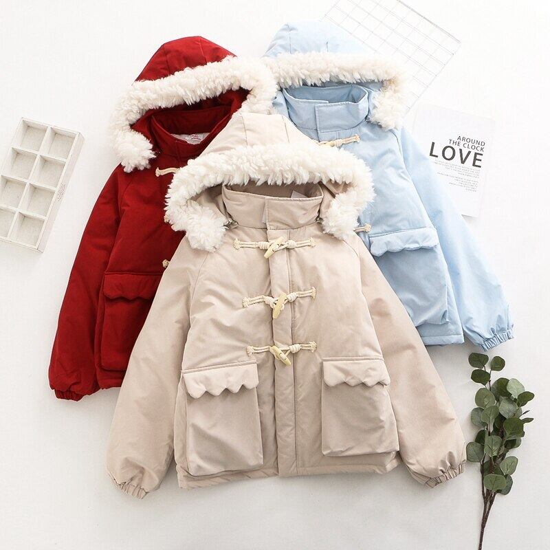 冬のコットンライナーフード付きパーカー厚みのある長袖ホーンボタンコート女性固体ポケット上着暖かいパッド入りジャケット ロング ウィンター 冬物 ソリッドカラー bel70463221759 | aliel