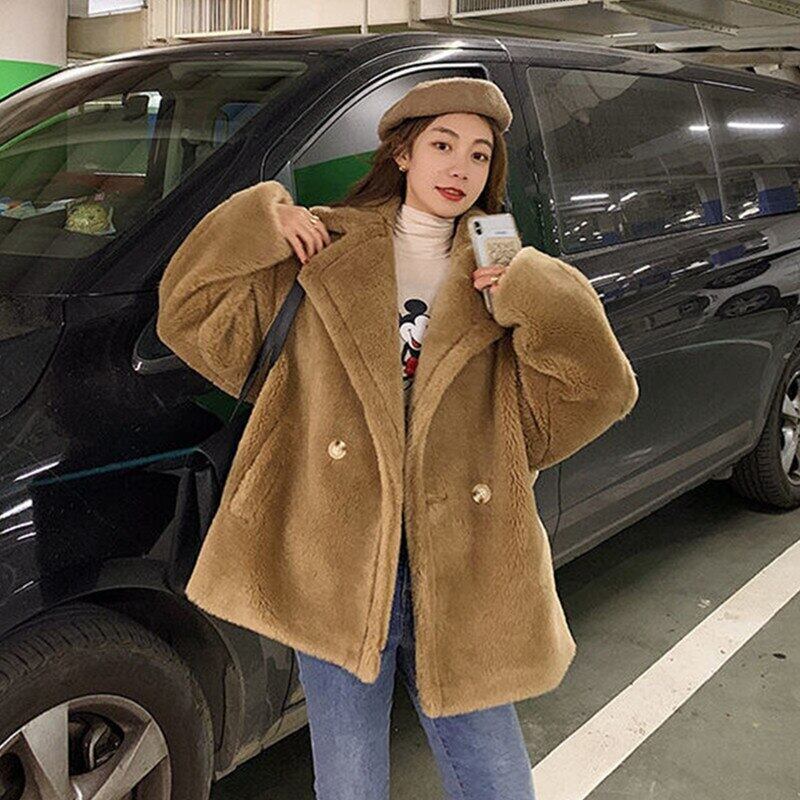 2021 女性の冬暖かいフェイクファーテディベアコート厚い女性ロングコートターンダウン襟女性暖かいコート Casaco Feminino ウィンター 冬物 bel69321889797 | aliel