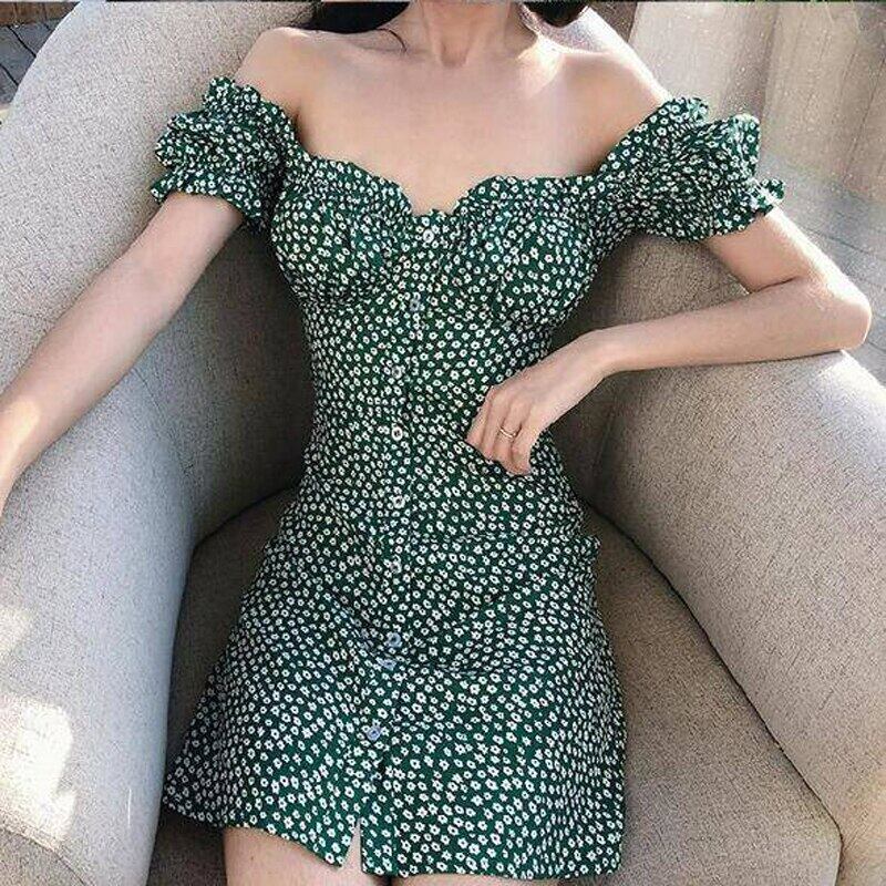 ベラ哲学 2020 夏自由奔放に生きるヴィンテージグリーンフローラルセクシードレスビーチオフショルダーフリルボヘミアンドレスレディカジュアルvestidos サマー 夏物 花柄 ビンテージ bel94331652429 | aliel