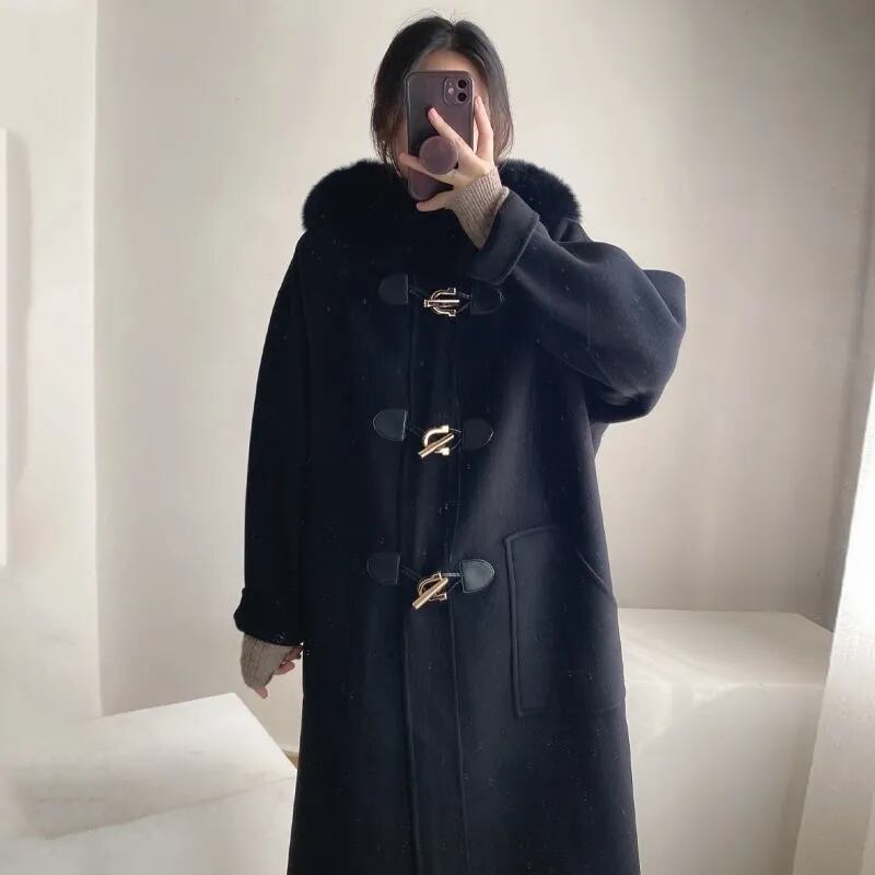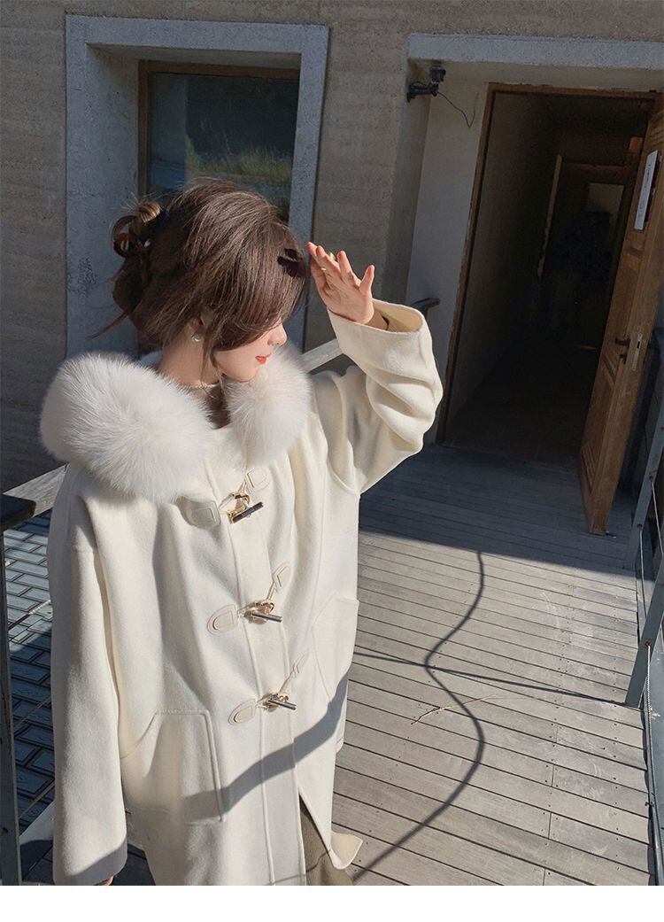 2022 女性のエレガントな毛皮の襟の冬のオーバーコート女性ホーンボタン甘い白ロングコート韓国厚く暖かいアウターウェア ホワイト 大人ガーリー スウィート キュート カジュアル ウィンター 冬物 bel77693944126 | aliel