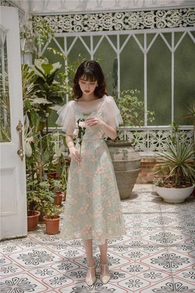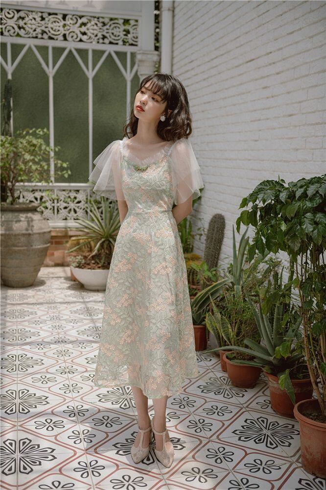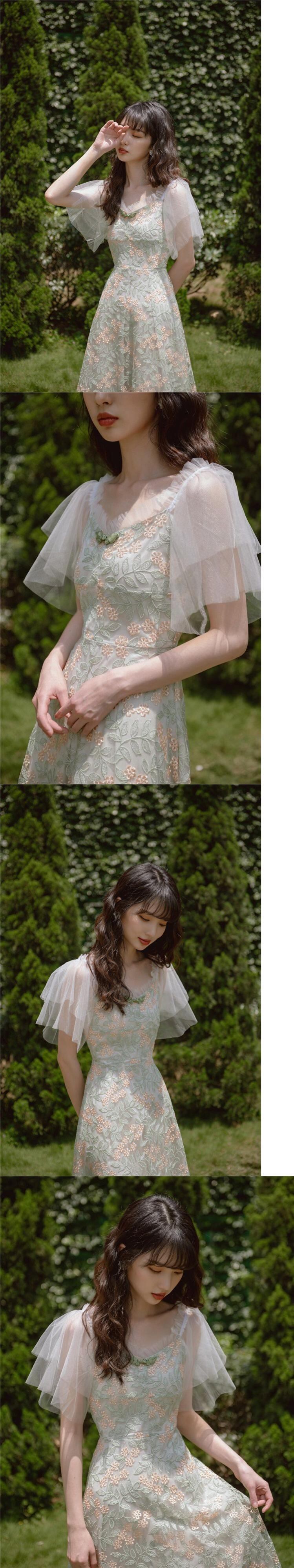 夏の花柄のドレスの女性のレトロな妖精のドレススリムフィット刺繍レースの甘いパーティードレス レッド 大人ガーリー スウィート キュート カジュアル サマー 夏物 bel79630459996 | aliel