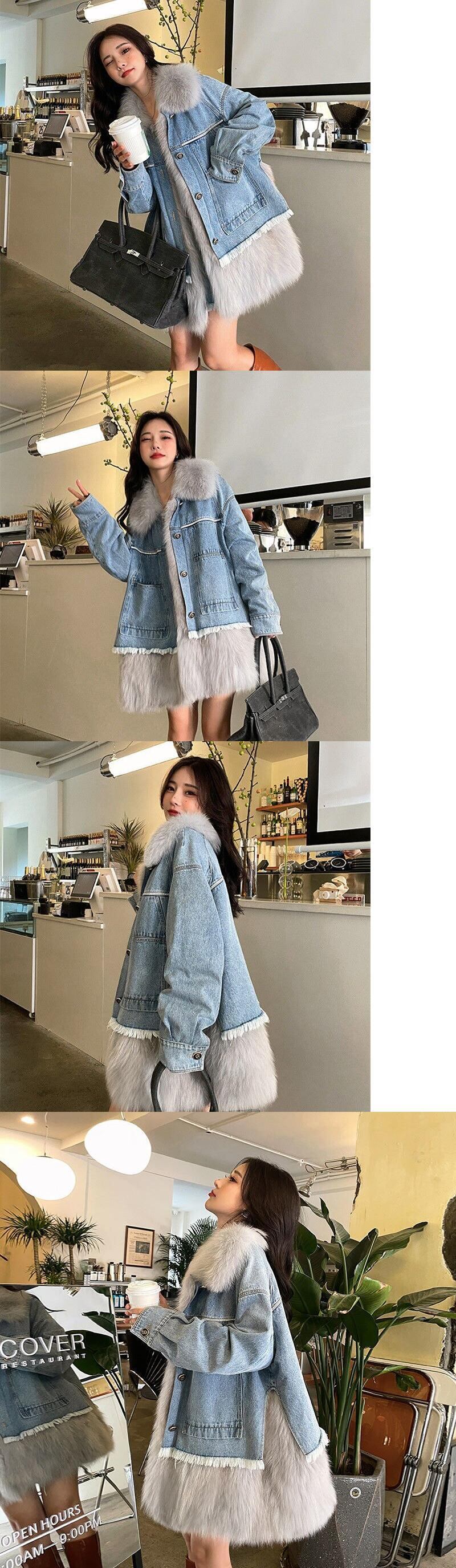 デニムデザイン おしゃれ 洋風 パイクファー イミテーションフォックスファー パーソナリティコート ミドル丈コート レディース ニュースタイル bel30747347069