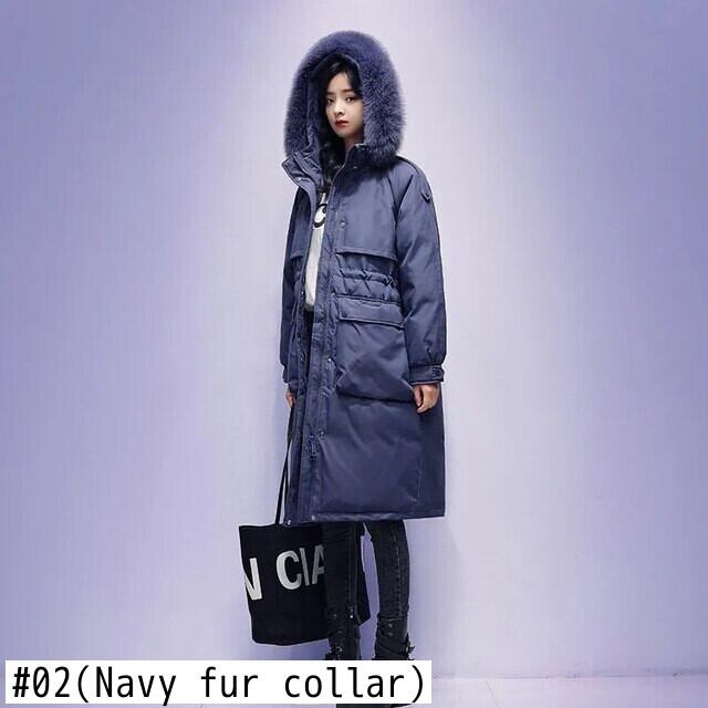 冬の毛皮の襟フード付きジャケット女性 90% ホワイトダックダウンロングパーカーコート厚さ雪暖かい生き抜く пуховик женский ウィンター 冬物 bel3734707936 | aliel