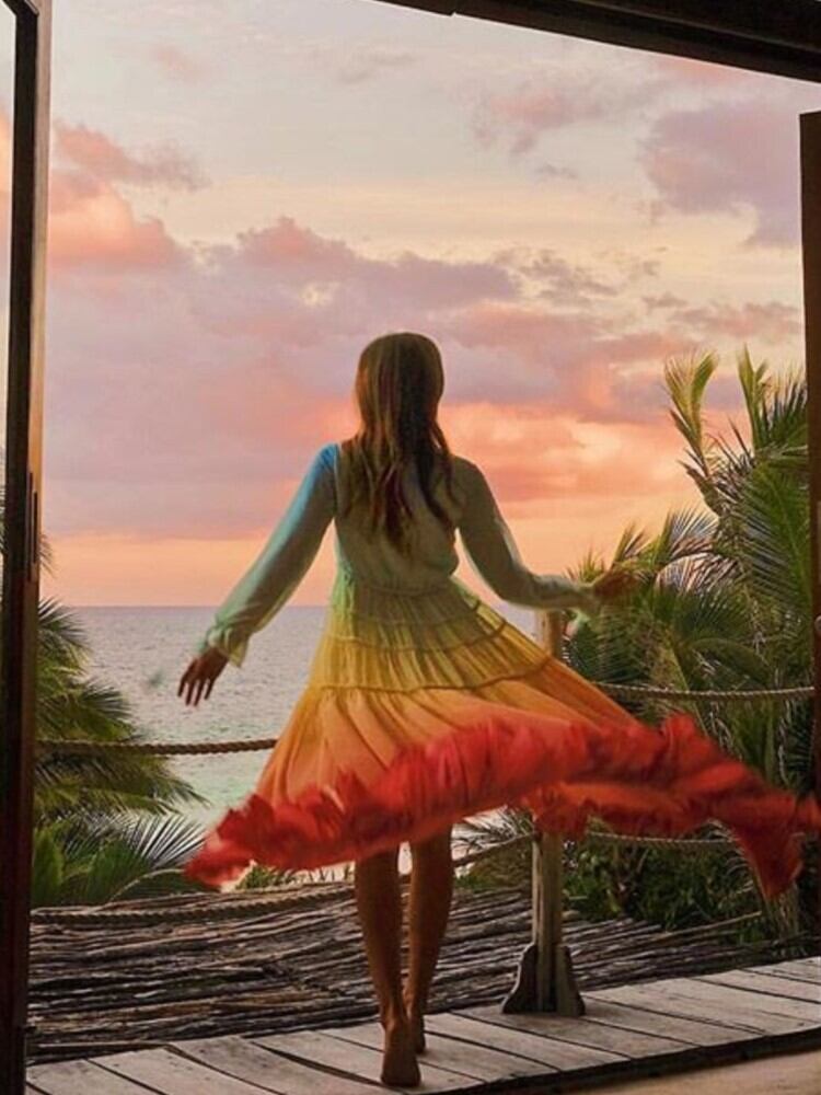 女性の夏のボヘミアン ドレス印刷グラデーション マキシ ドレス パッチワーク虹色パーティー ドレス フリル甘い Vestidos ラッフル 大人ガーリー スウィート キュート カジュアル サマー 夏物 bel58698670611 | aliel