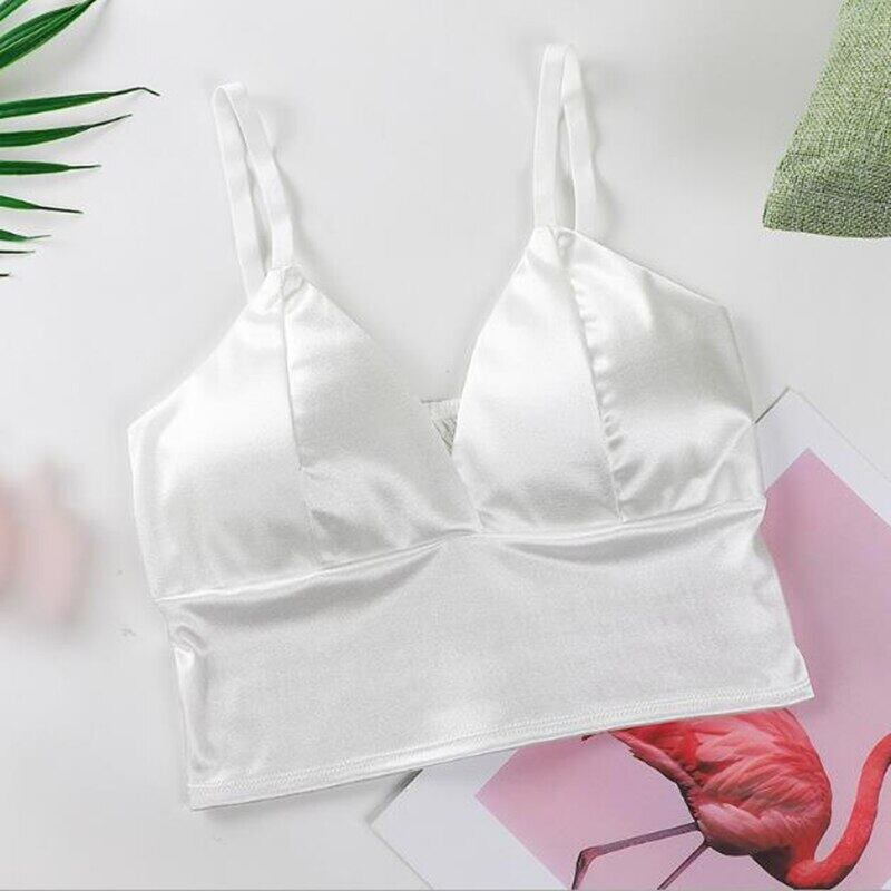 2022 セクシーな V ネックブラジャー美容バックラップ胸ワイヤレス女性のブラジャーランジェリー夏チューブトップス下着シルキーサテンキャミソールトップ サマー 夏物 Vネック bel47453349763 | aliel