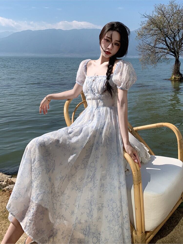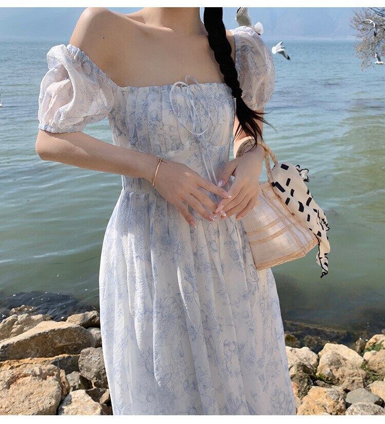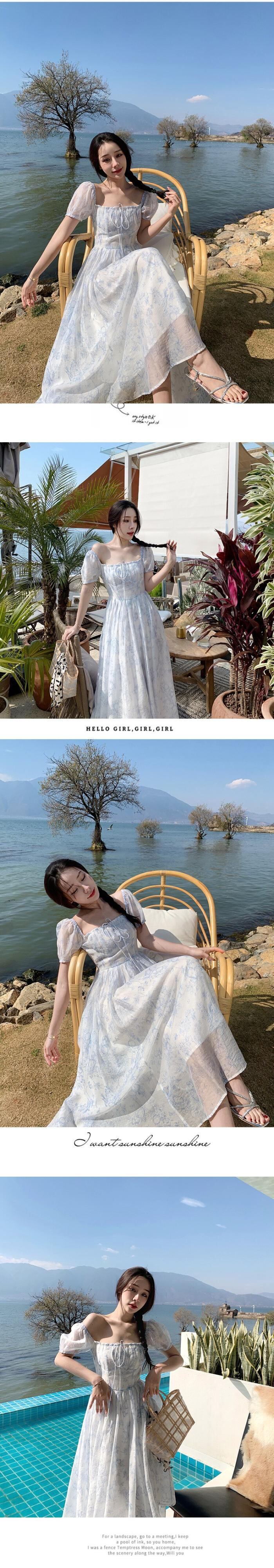 2022 夏フレンチシックな甘い妖精花ドレスできるロングドレス ropa mujer vestido ミディ 大人ガーリー スウィート キュート カジュアル サマー 夏物 花柄 bel14436674602 | aliel