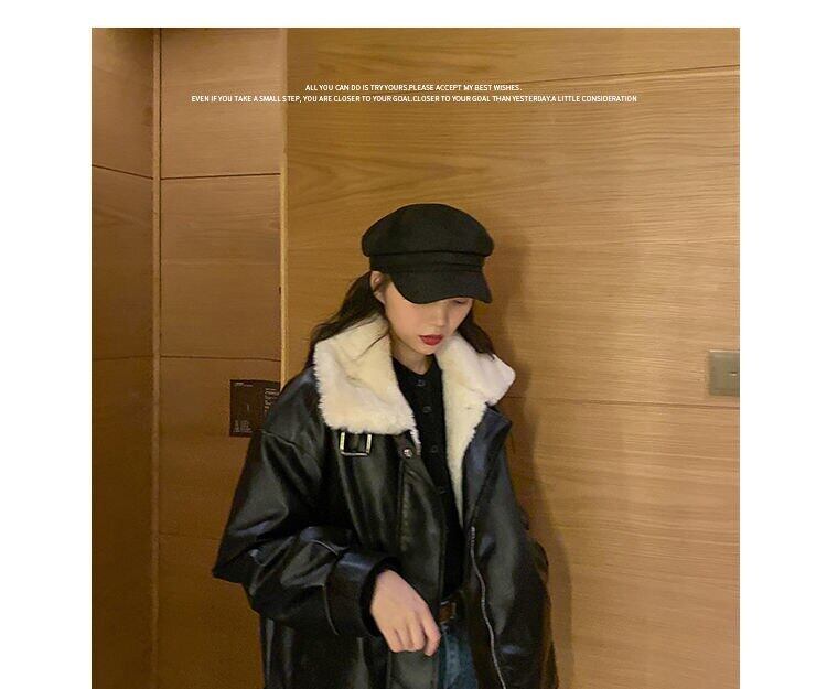 大サイズの暖かいジャケットの女性 2022 冬の模造革ジャケット PU レザープラスベルベット子羊ウールの裏地レザージャケット 大きめサイズ ウィンター 冬物 bel20813802814