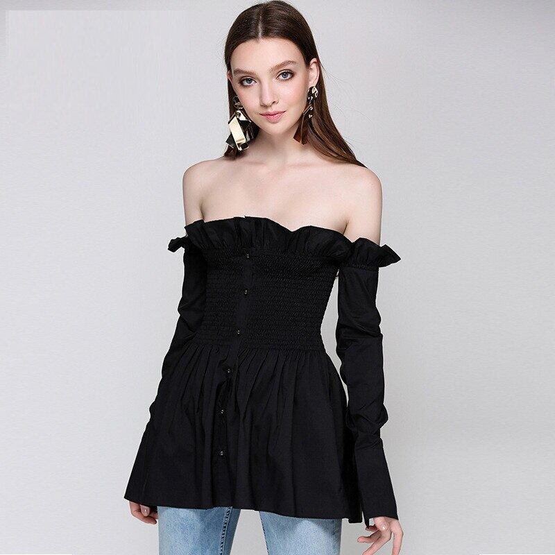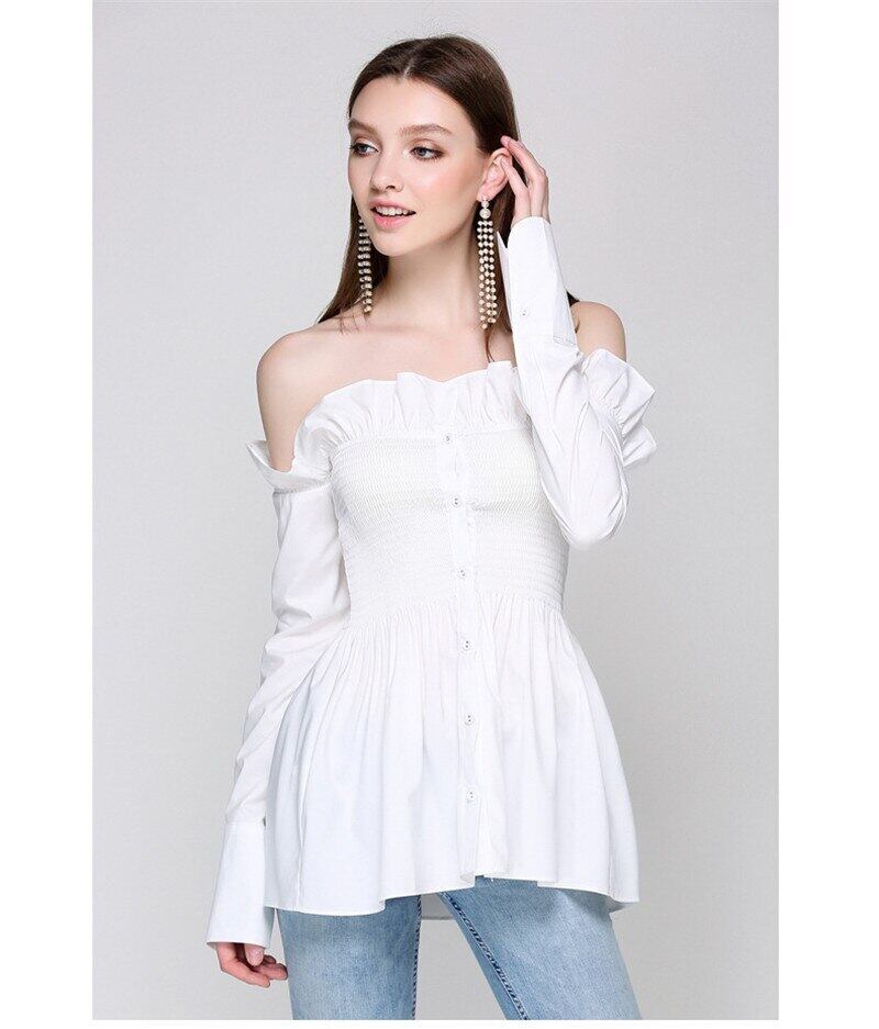 2022 春の女性のセクシーなスラッシュネックトップブラウスソリッドボタンフルスリーブシャツストラップレススリムファッションブラウス blusas スプリング 春物 ソリッドカラー bel23399841262 | aliel