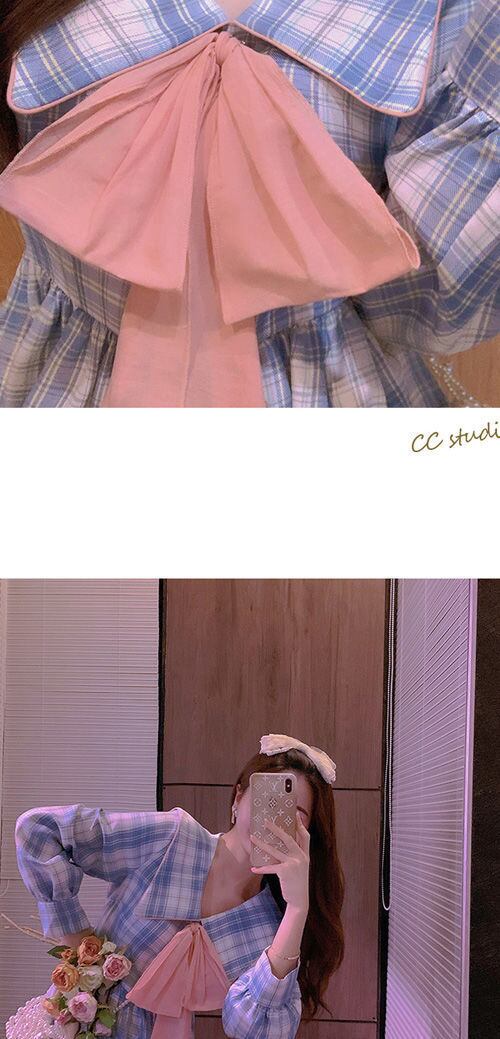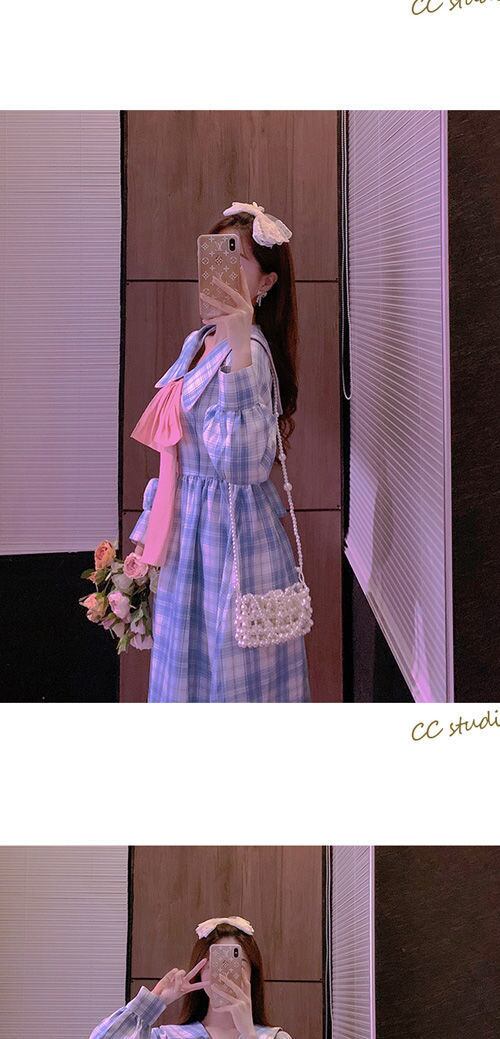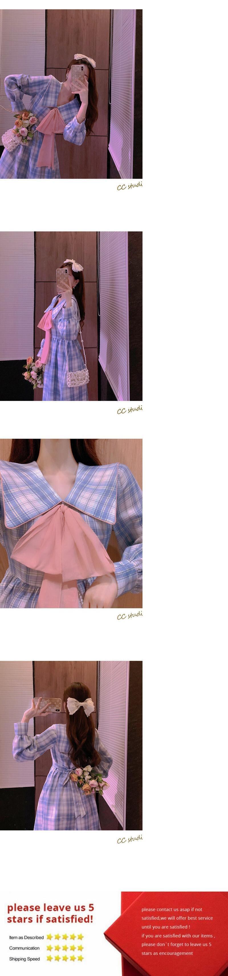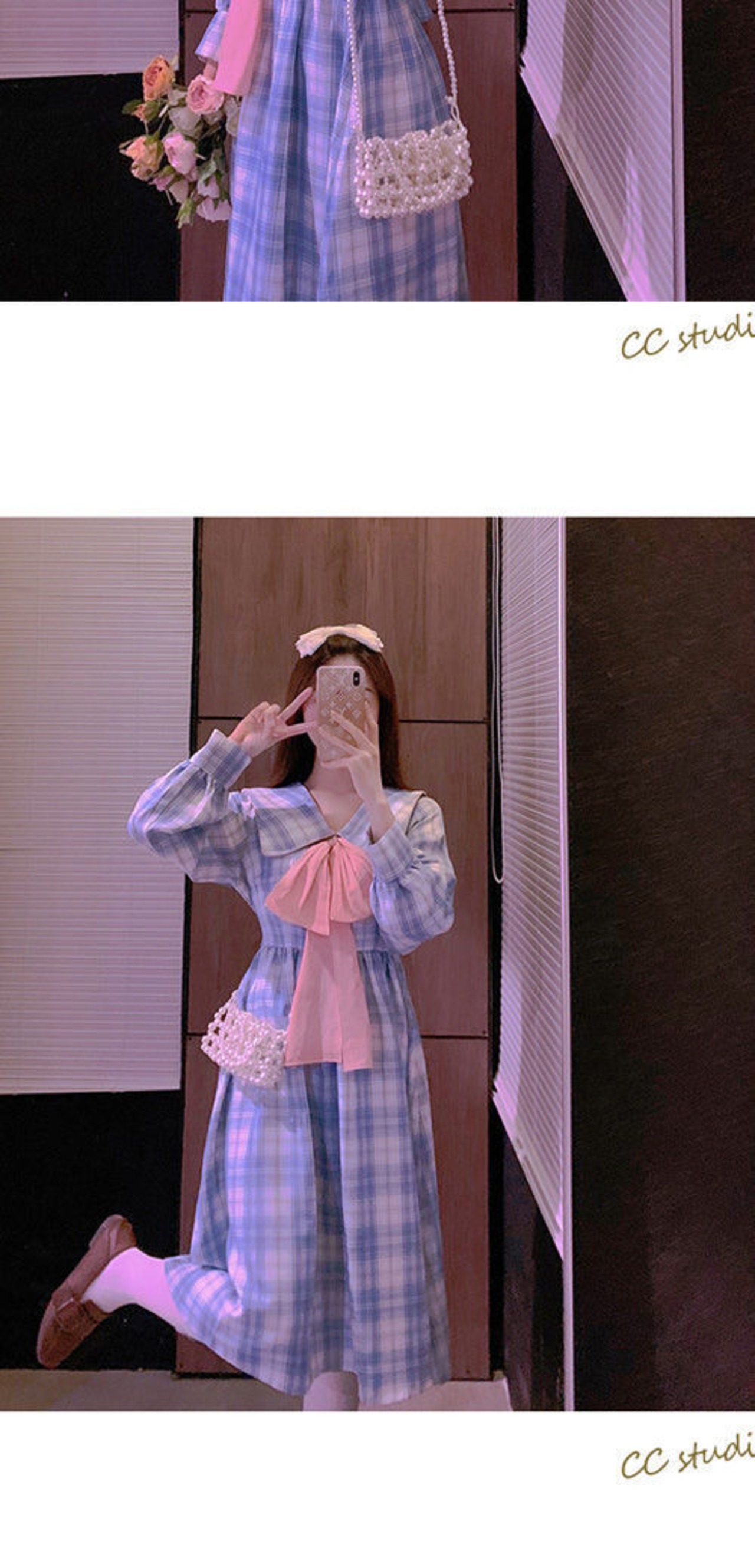 春秋 ese 甘い JK ドレス女性のセーラーカラー弓ステッチ長袖格子縞のドレスパーティー Vestidos ロング リボン 大人ガーリー スウィート キュート カジュアル スプリング 春物 オータム 秋物 bel11023086636 | aliel