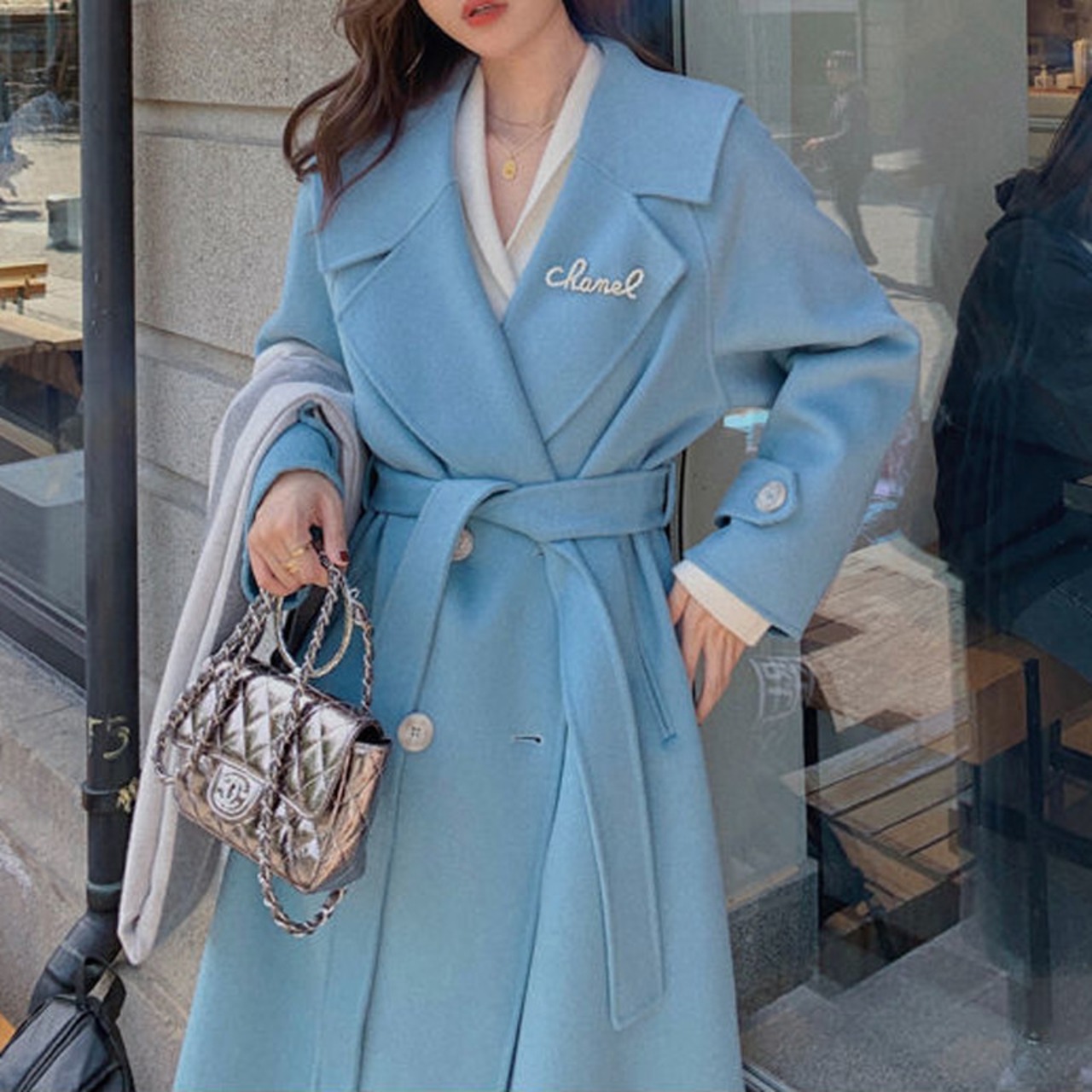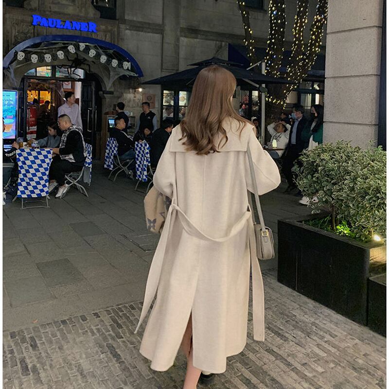 2021 女性ロングウールコートとベルト固体長袖ジャケットシックなアウターウェアオーバーコート秋冬 オータム 秋物 ウィンター 冬物 ハーネス ソリッドカラー bel18429809377 | aliel