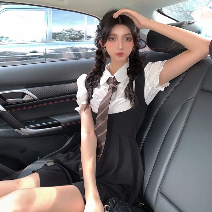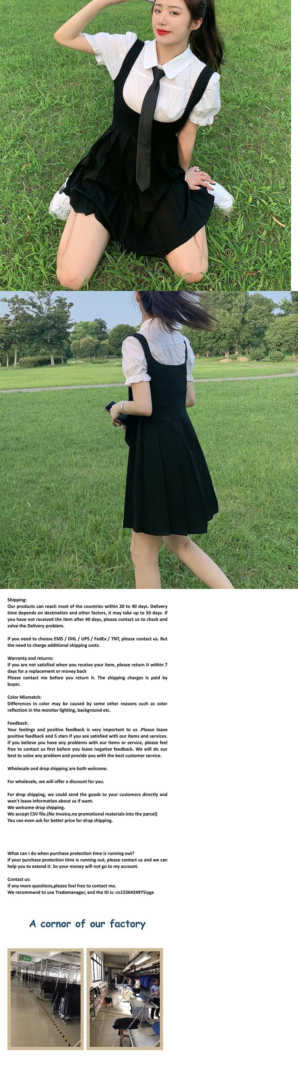 女性ドレスセットプレッピースタイルスリムストリートガールスウィートインパフスリーブシャツプリーツドレス学生原宿オル JK ホット 大人ガーリー キュート カジュアル かわいい bel51823981478 | aliel