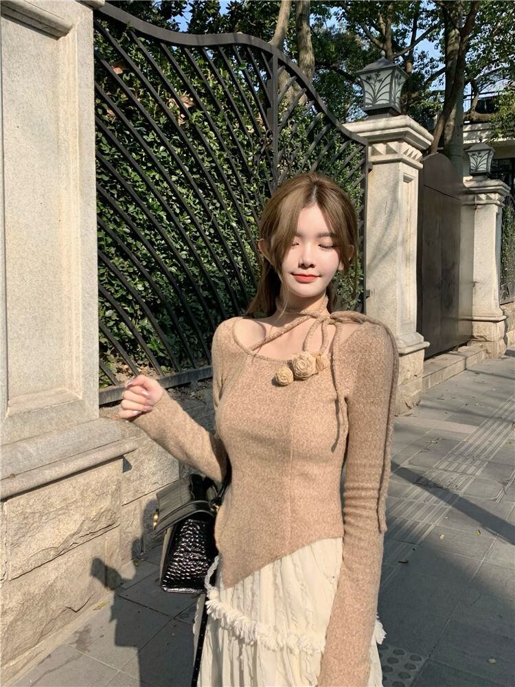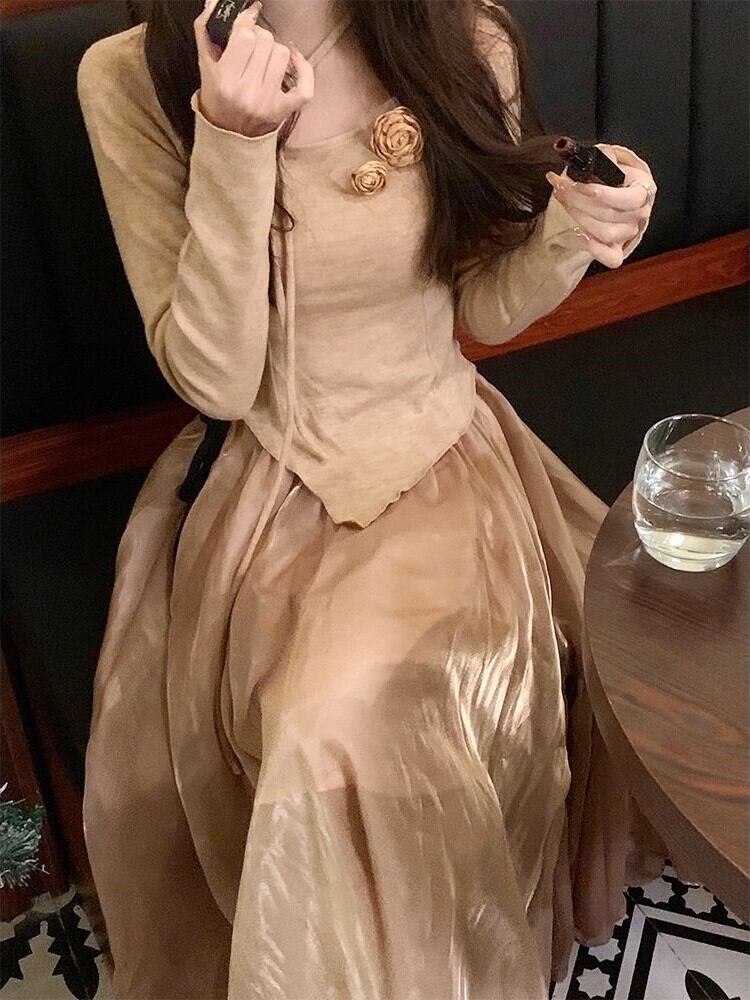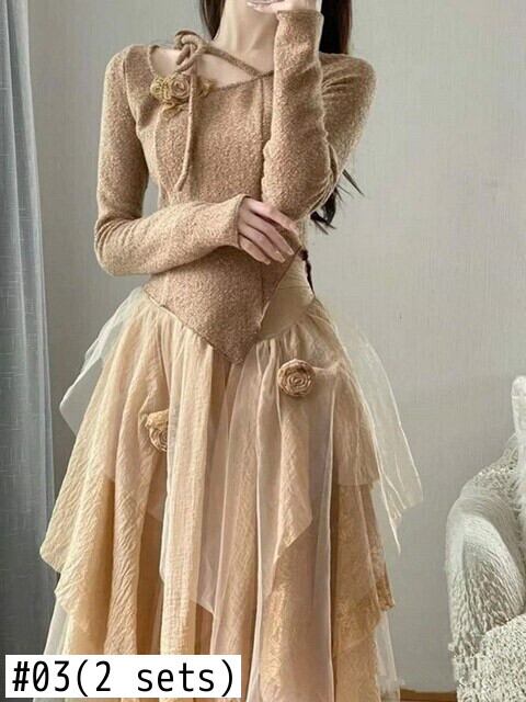 スカートスーツ秋のツーピースセット女性 3D 花柄長袖シャツ不規則なスカートスーツ甘い衣装 ロング 大人ガーリー スウィート キュート カジュアル オータム 秋物 bel74033076408 | aliel