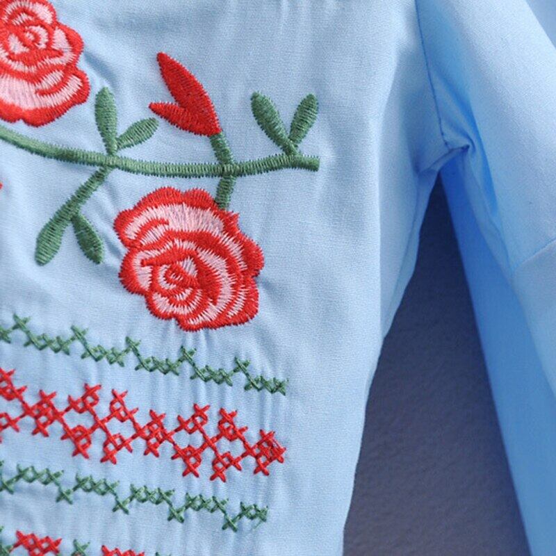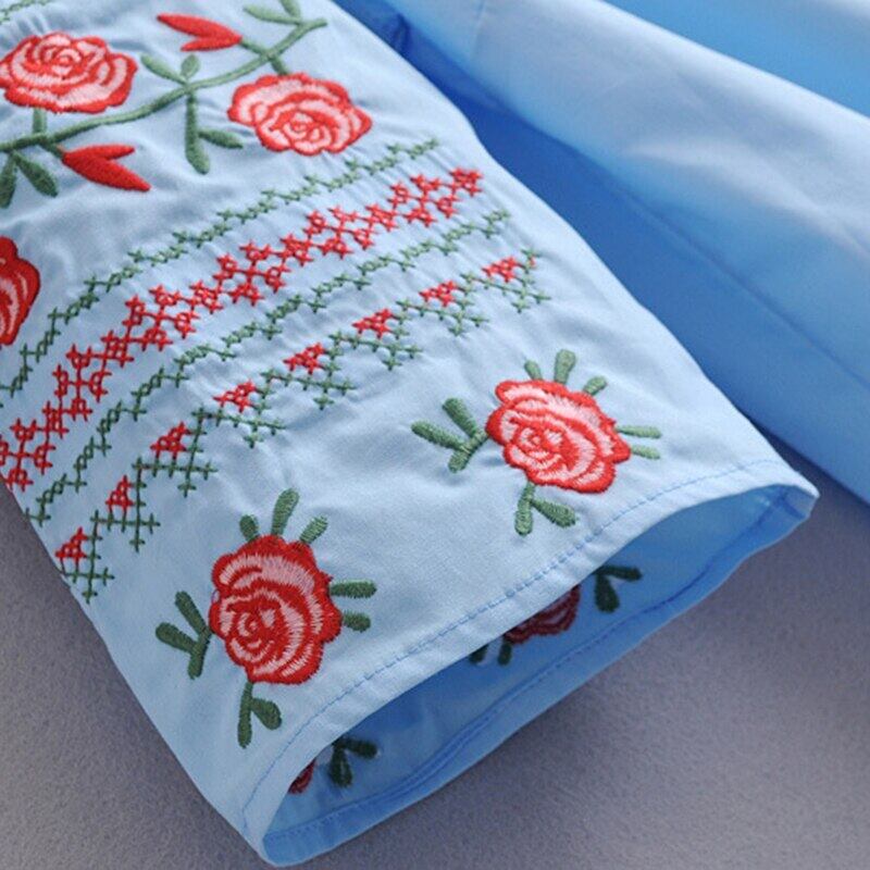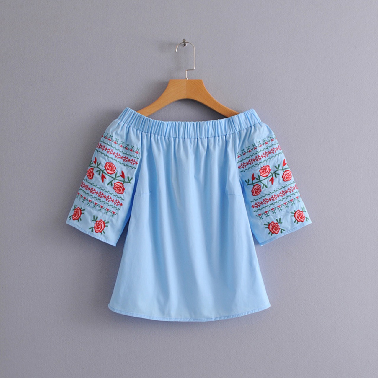 Bella Philosophy 2018 オフショルダー 刺繍 シャツ 花柄 スイート スラッシュネック ブラウス ブルー ベーシック 大人ガーリー スウィート キュート カジュアル bel10789287731 | aliel