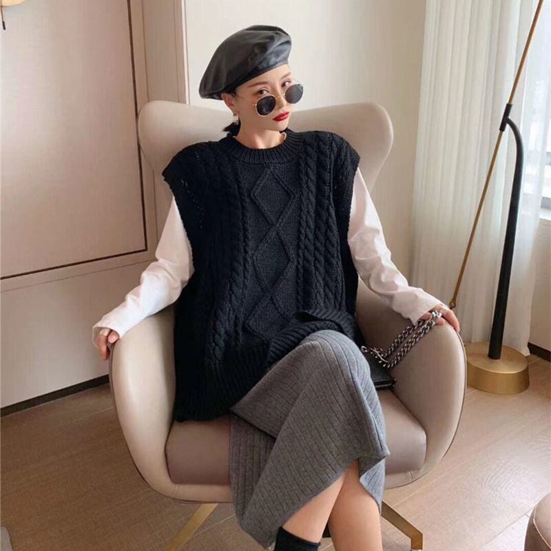 秋冬 セーター ゆったり ベスト ノースリーブ 無地 大きいサイズ アウター ニット セーター ベスト 大きめサイズ オータム 秋物 ウィンター 冬物 ソリッドカラー bel9737306877