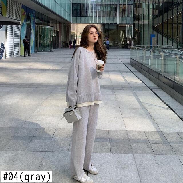 秋冬 2021 レジャースーツ女性の二枚ニットセーターワイドレッグパンツ рукава プル特大ピンクトップ オータム 秋物 ウィンター 冬物 ワイドパンツ bel87210803240 | aliel