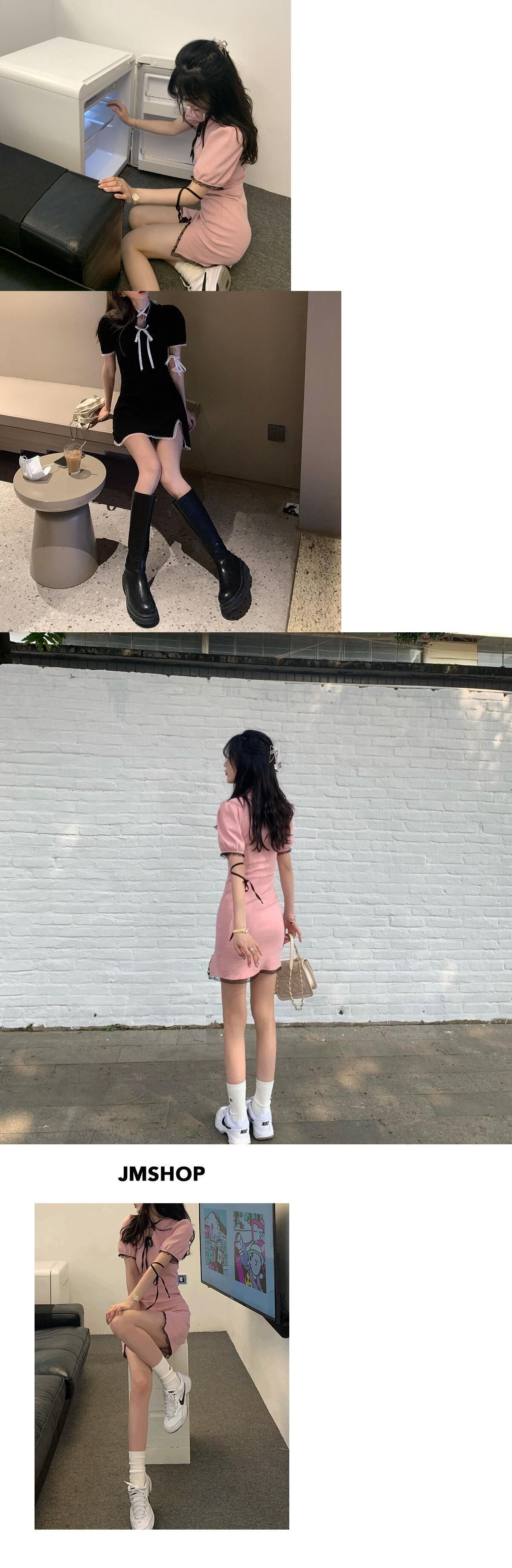 セクシーなパフ半袖ドレス女性スリムベルトレーススタンドカラー夏ミニ甘いスタイル Vestidos 原宿 ショート ハーフスリーブ 大人ガーリー スウィート キュート カジュアル かわいい サマー 夏物 ハーネス bel11634192659 | aliel