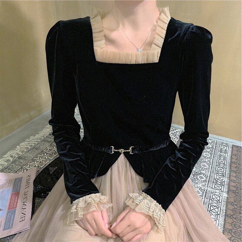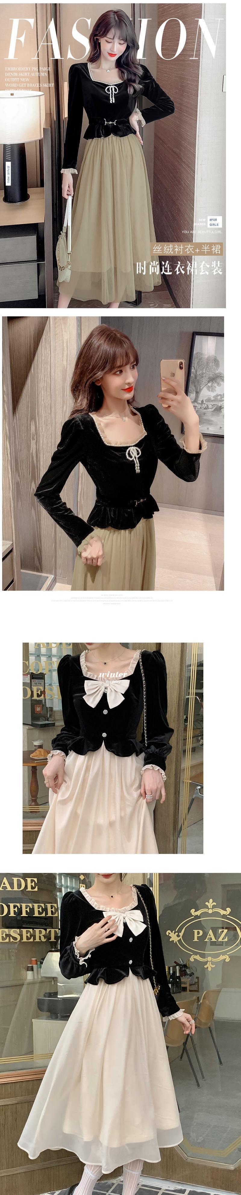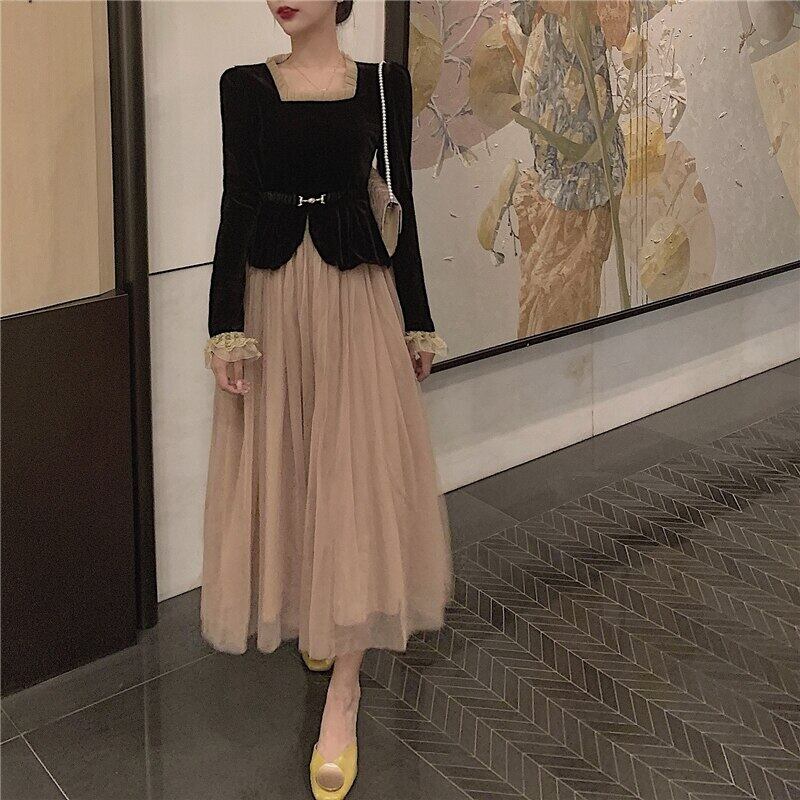 2022 女性 Vinatge フレンチスタイルスクエアカラーベルベットトップメッシュスカート 2 点セット Vestido デ юбка и топик комплект スクウェア bel87576269229 | aliel