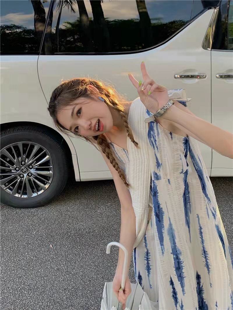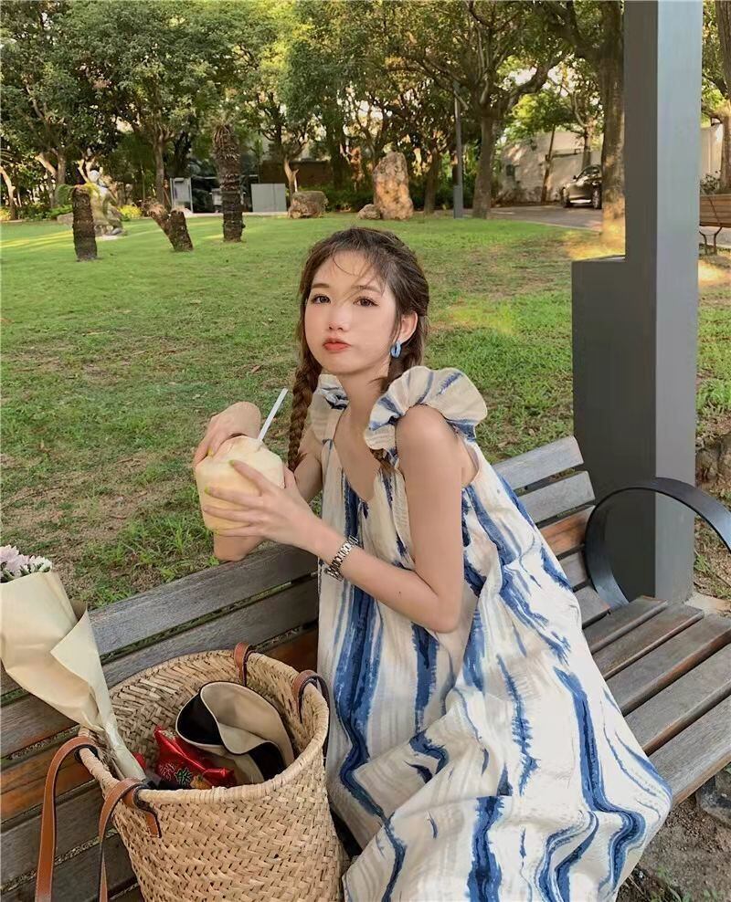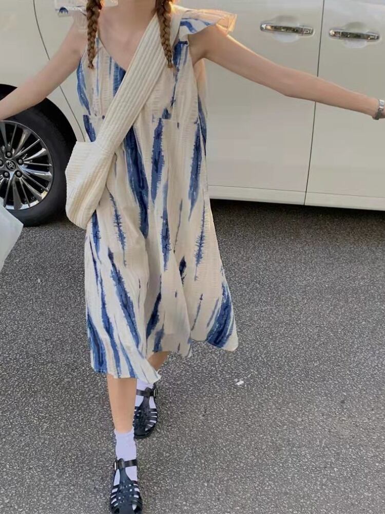ドレス女性フレンチ スタイル マイノリティ ミディアム ロング タイダイ ブルー フライング スリーブ スイート コージー ストリートウェア オールマッチ スタイリッシュ ガーリッシュ シック 大人ガーリー スウィート キュート カジュアル bel44895546695 | aliel