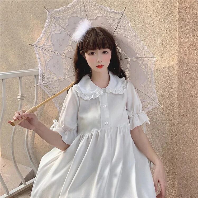 夏甘いピーターパン襟白いドレス女性フリルかわいい妖精ミニドレス ese 原宿 Vestidos ホワイト ラッフル 大人ガーリー スウィート キュート カジュアル サマー 夏物 bel54224289714 | aliel