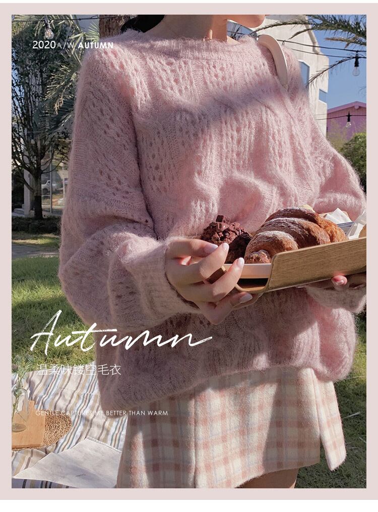 白シックなモヘアプルオーバーセーター秋 2021 長袖中空アウトセーター O ネックプルオーバー女性ジャンパー甘いセーター ロング ホワイト 大人ガーリー スウィート キュート カジュアル オータム 秋物 Oネック bel28149232911 | aliel