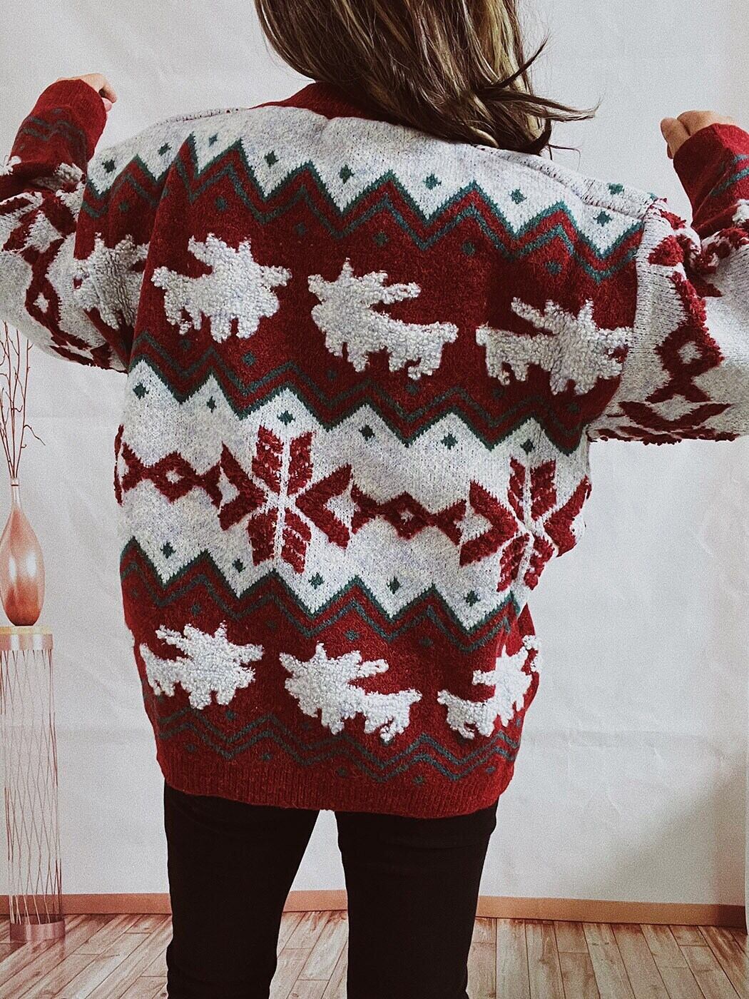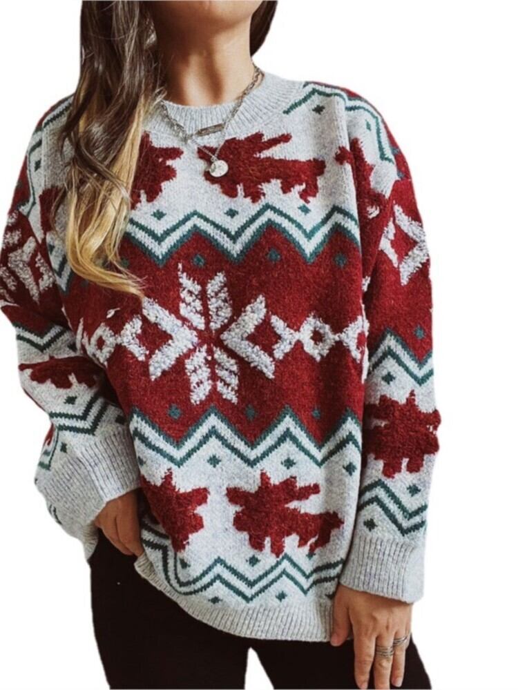 2022秋冬ラウンドネック長袖クリスマステーマスノーフレークヘラジカニットイヤーセーターニットプルオーバー ロング オータム 秋物 ウィンター 冬物 Oネック bel83516039376 | aliel