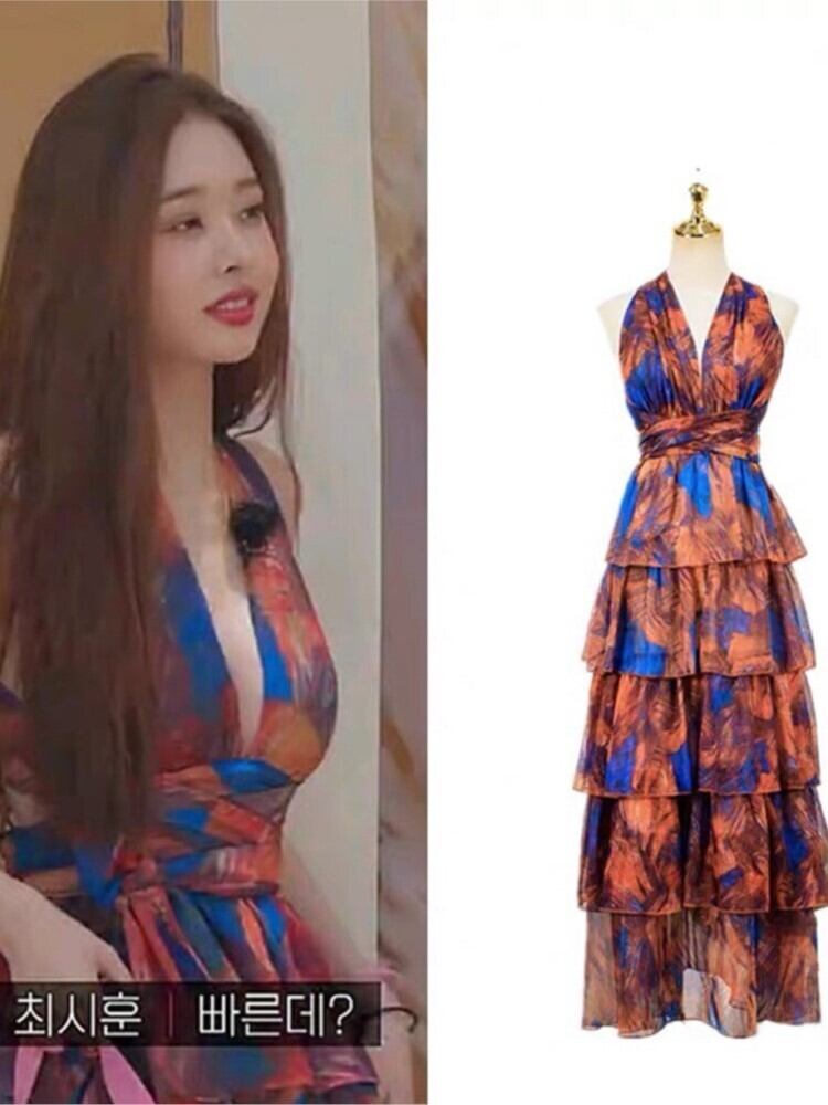 Song Zhiya Single Is Hell 同じスタイル カスケード フリル ドレス ノースリーブ Vネック ボディコン サマードレス ラッフル 夏物 bel4505385994 | aliel