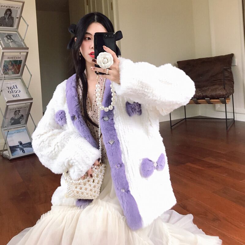 ニットフェイクレックスウサギの毛皮のコートの女性の冬のセーター暖かいフェイクウサギの毛皮のジャケット V ネックカーディガン女性生き抜く ウィンター 冬物 ファー Vネック bel85385949904
