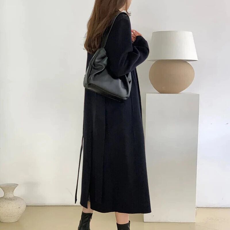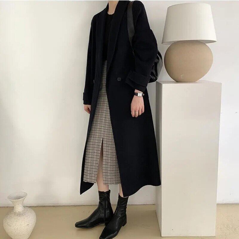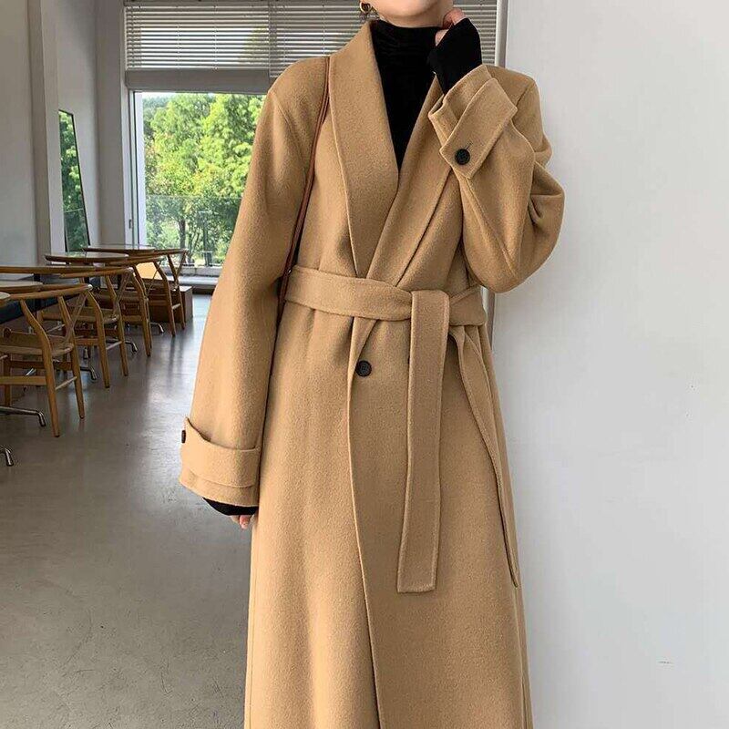 冬の女性の固体サッシダブルブレストウールコート厚く暖かいアウターウェアオフィスレディストリートコート ウィンター 冬物 ソリッドカラー 会社 学校 通勤や通学にも bel84074930078 | aliel