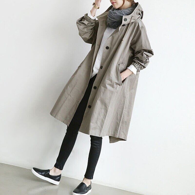 Bella Philosophy 2019 春無地 A ラインロングトレンチ女性コートプラスサイズベーシックウインドブレーカー緩いイングランドスタイル生き抜く 大きめサイズ スプリング 春物 Aライン ソリッドカラー ヨーロピアン bel72931264989