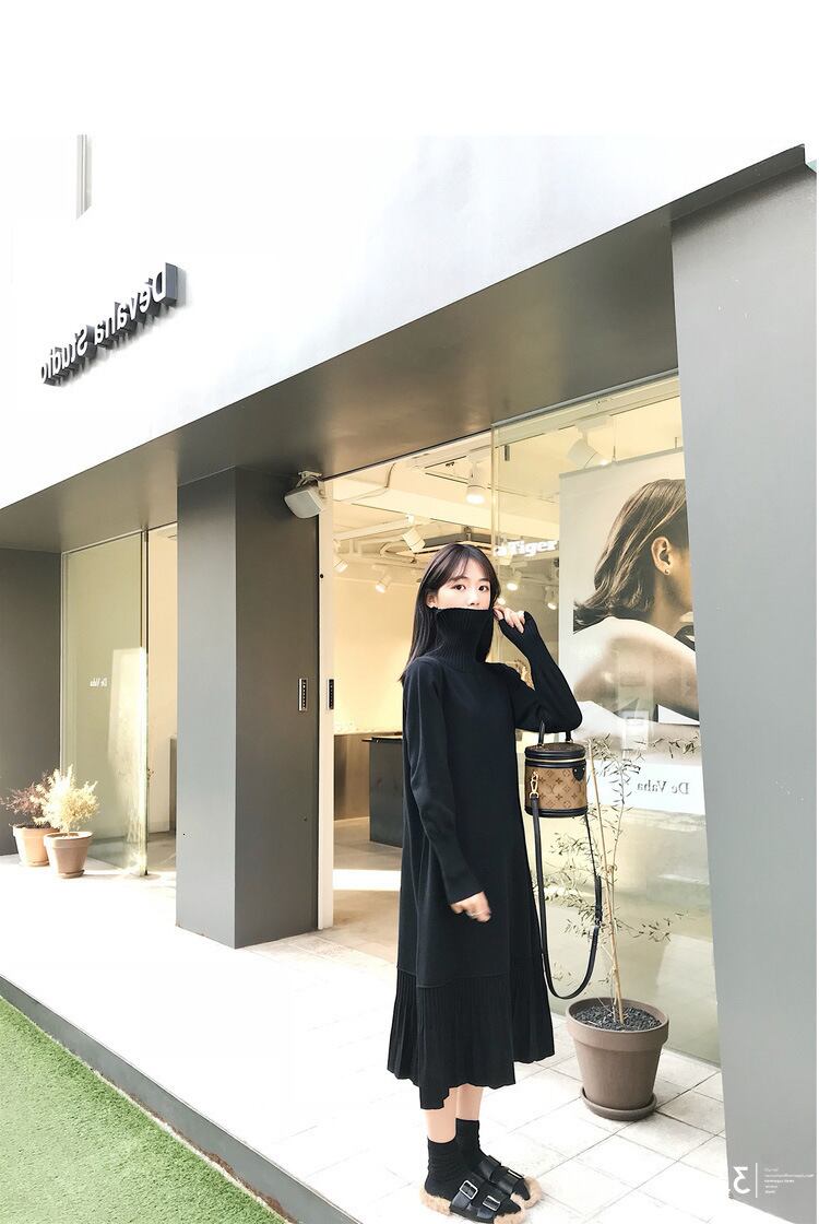 2021 女性の秋ソリッドセーターロングドレス暖かいニットフリル Vestido タートルネックセクシーなドレス ラッフル オータム 秋物 ソリッドカラー bel68994133213 | aliel