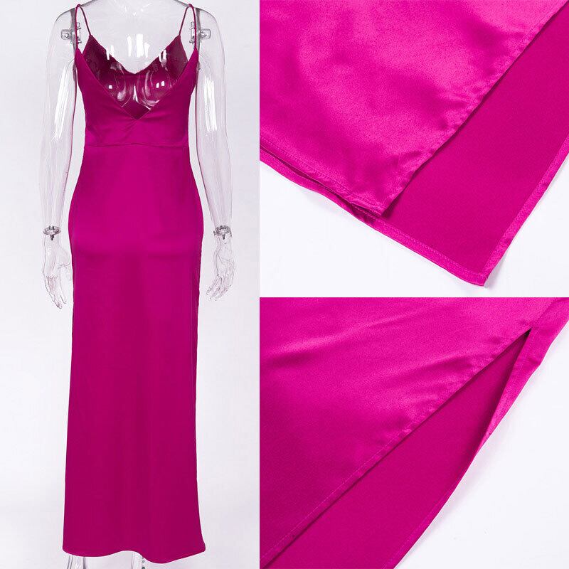 ベラ哲学セクシーなストリートサテンドレス女性スパゲッティストラップ V ネックセクシーなスリット背中の開いたマキシドレスパーティークラブ Vestidos Vネック bel23731812141 | aliel